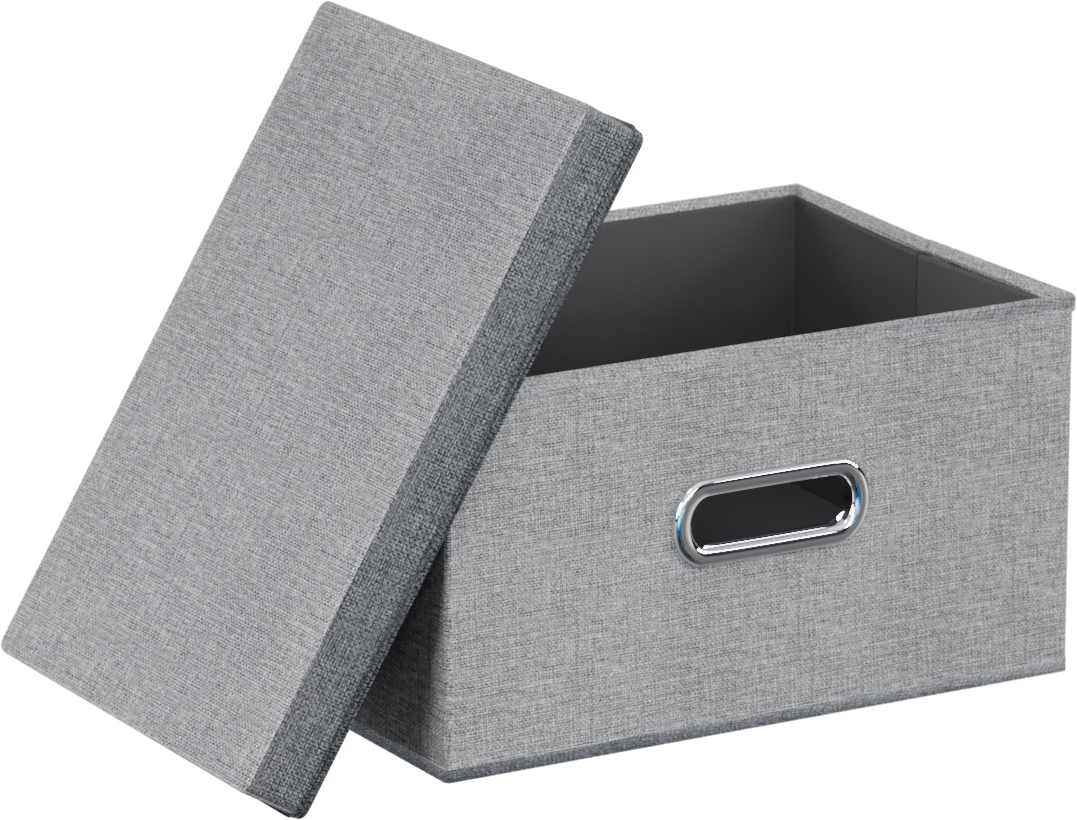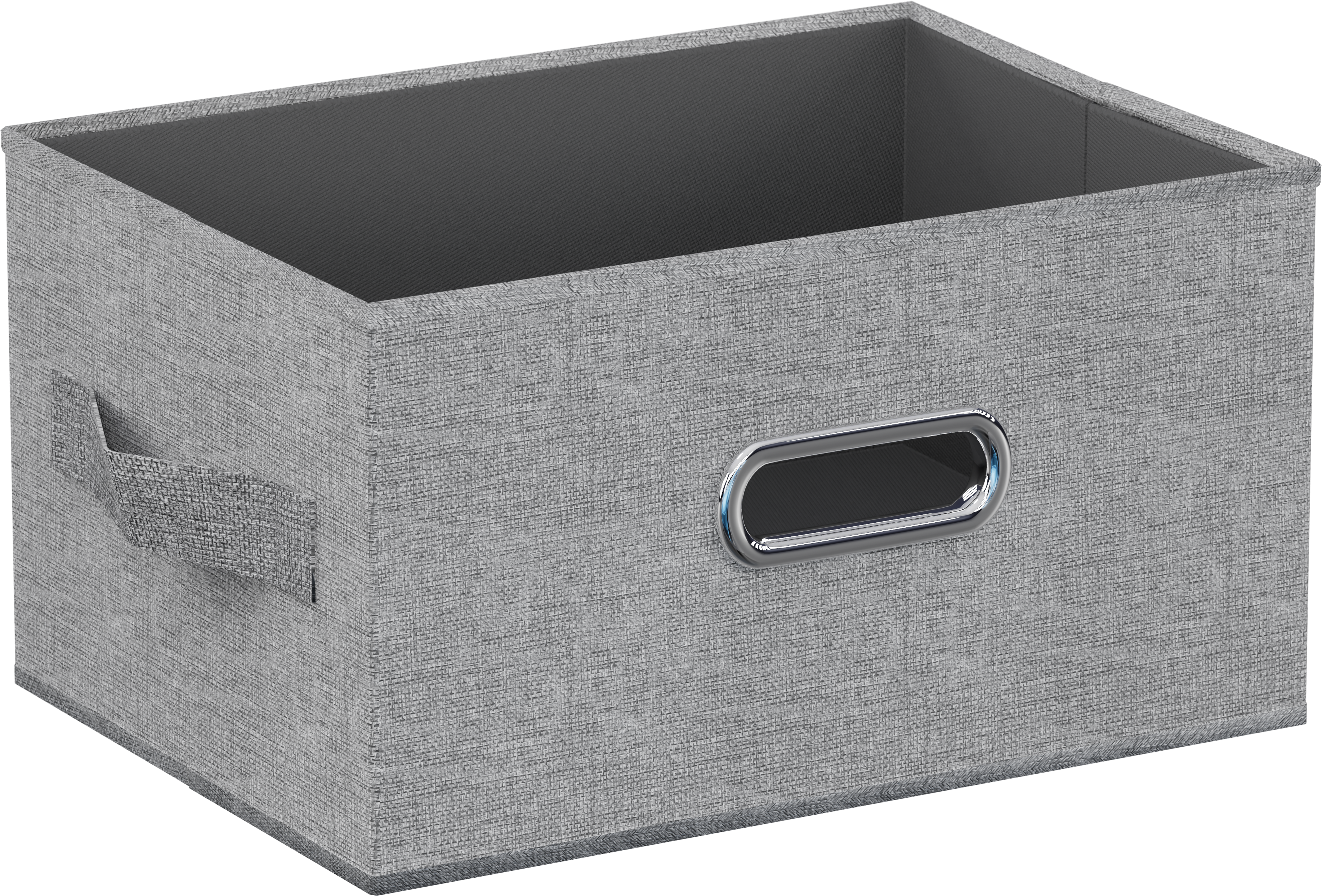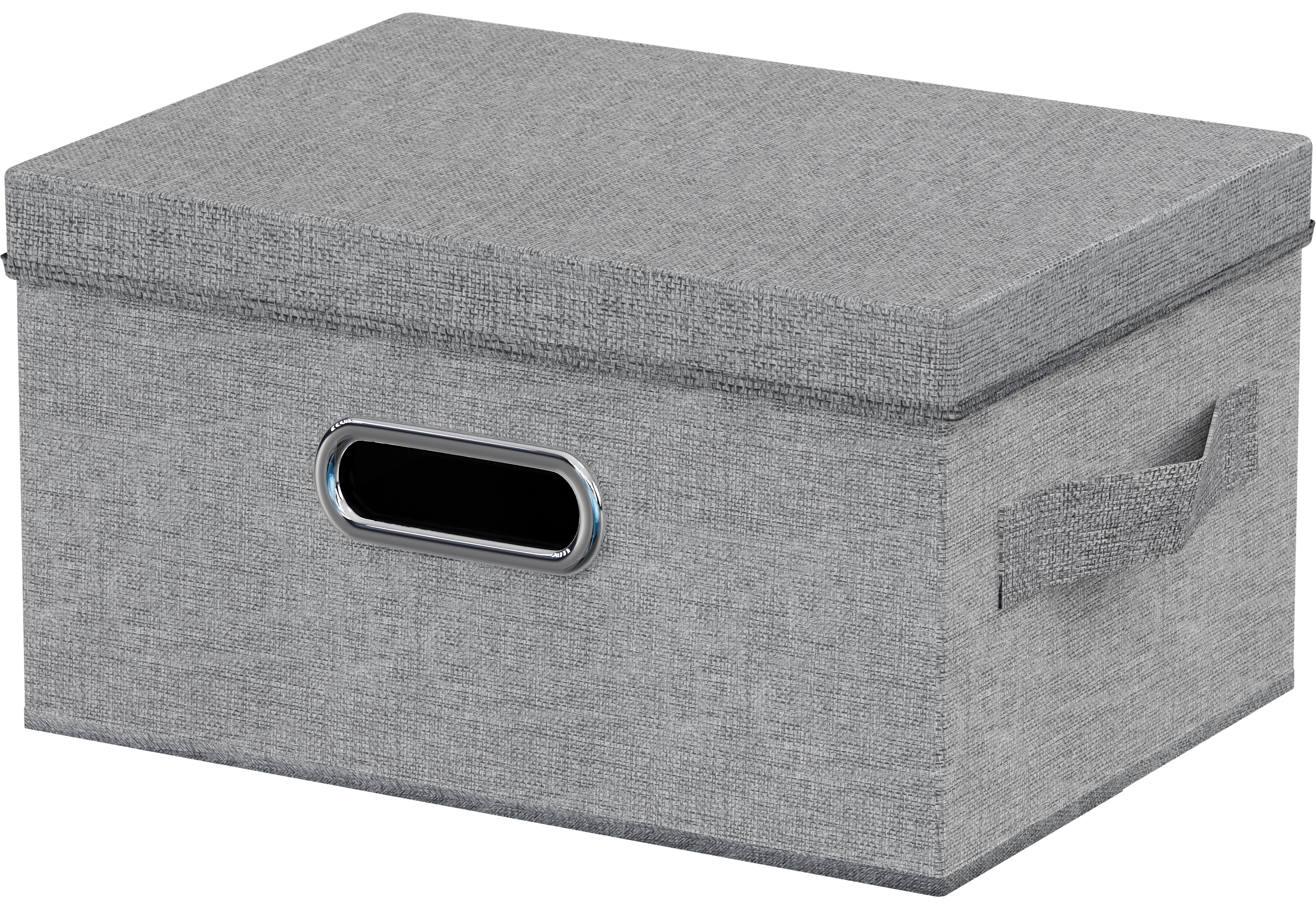 Кофр для хранения вещей и организации пространства в вашем доме. Интегрированная металлическая ручка для комфортного использования. Жесткий каркас обшит материалом, структура которого напоминает лен.