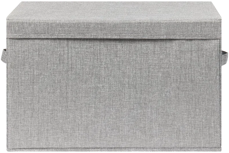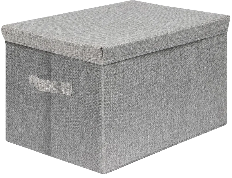 Увеличенный размер для хранения различных предметов: от документов до сезонной одежды. Металлическая ручка для комфортного использования. Плотно прилегающая крышка для надежной защиты от внешних воздействий. Жесткий каркас обшит материалом, структура которого напоминает лен.