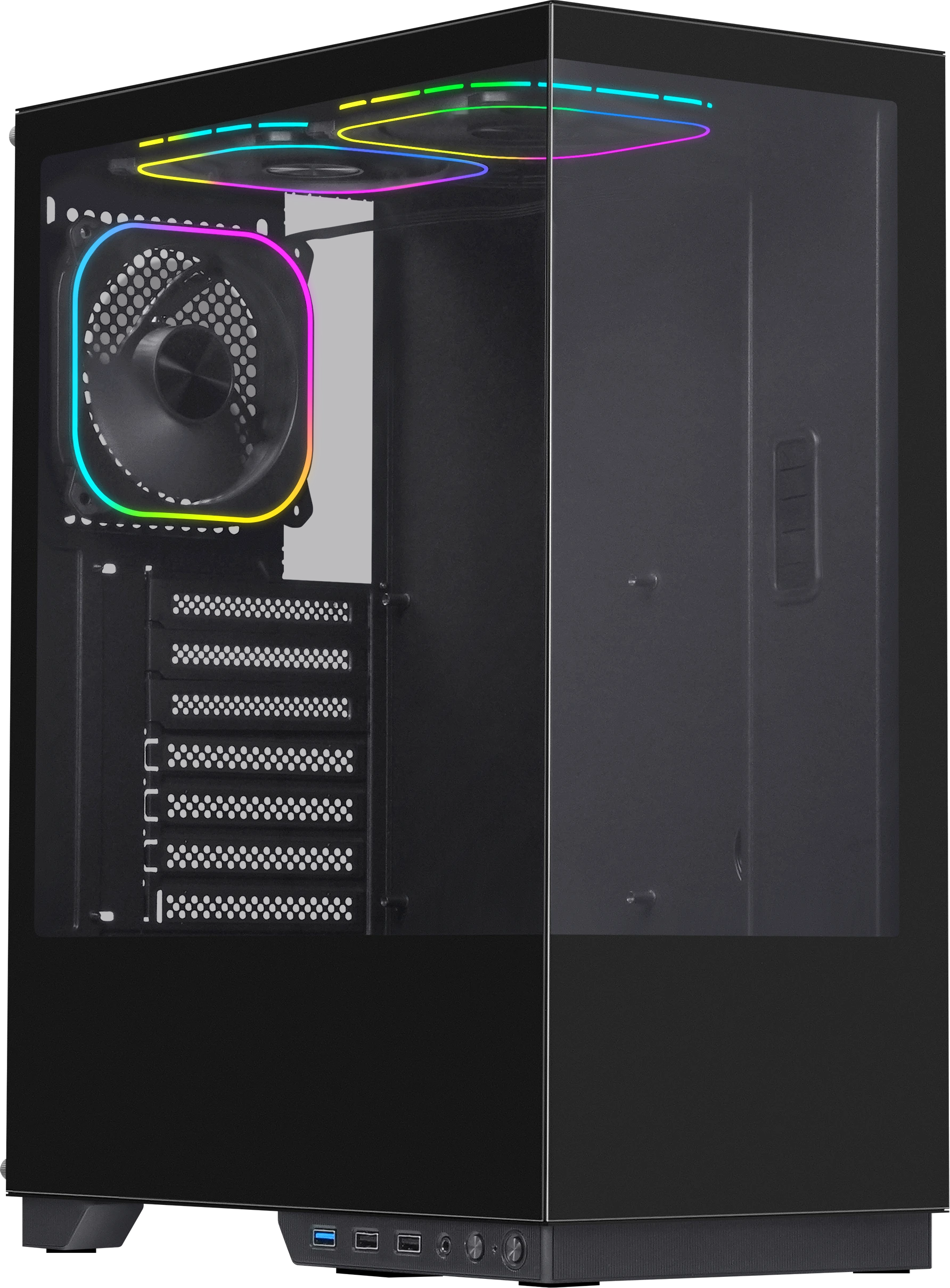 Стильный компактный ATX корпус с продуманной конструкцией и подсветкой. Две стороны из закалённого стекла 3 мм создают эффект витрины, демонстрируя вашу сборку во всех деталях. Три встроенных ARGB вентилятора 120мм, с возможностью смены режимов подсветки и синхронизации с материнской платой. Вмещает видеокарты до 330 мм и имеет скоростной порт USB 3.0 (до 5 Гбит/с). Инновационный кабельный менеджмент: провода аккуратно скрыты в отдельном отсеке с магнитной крышкой. Мощное охлаждение: поддержка до 5 вентиляторов 120 мм (2 сверху, 2 снизу, 1 сзади) и СЖО 120/240 мм. Максимальная высота кулера — 170 мм. HyperHub — синтез инноваций и эстетики. Идеальная платформа для вашей системы.