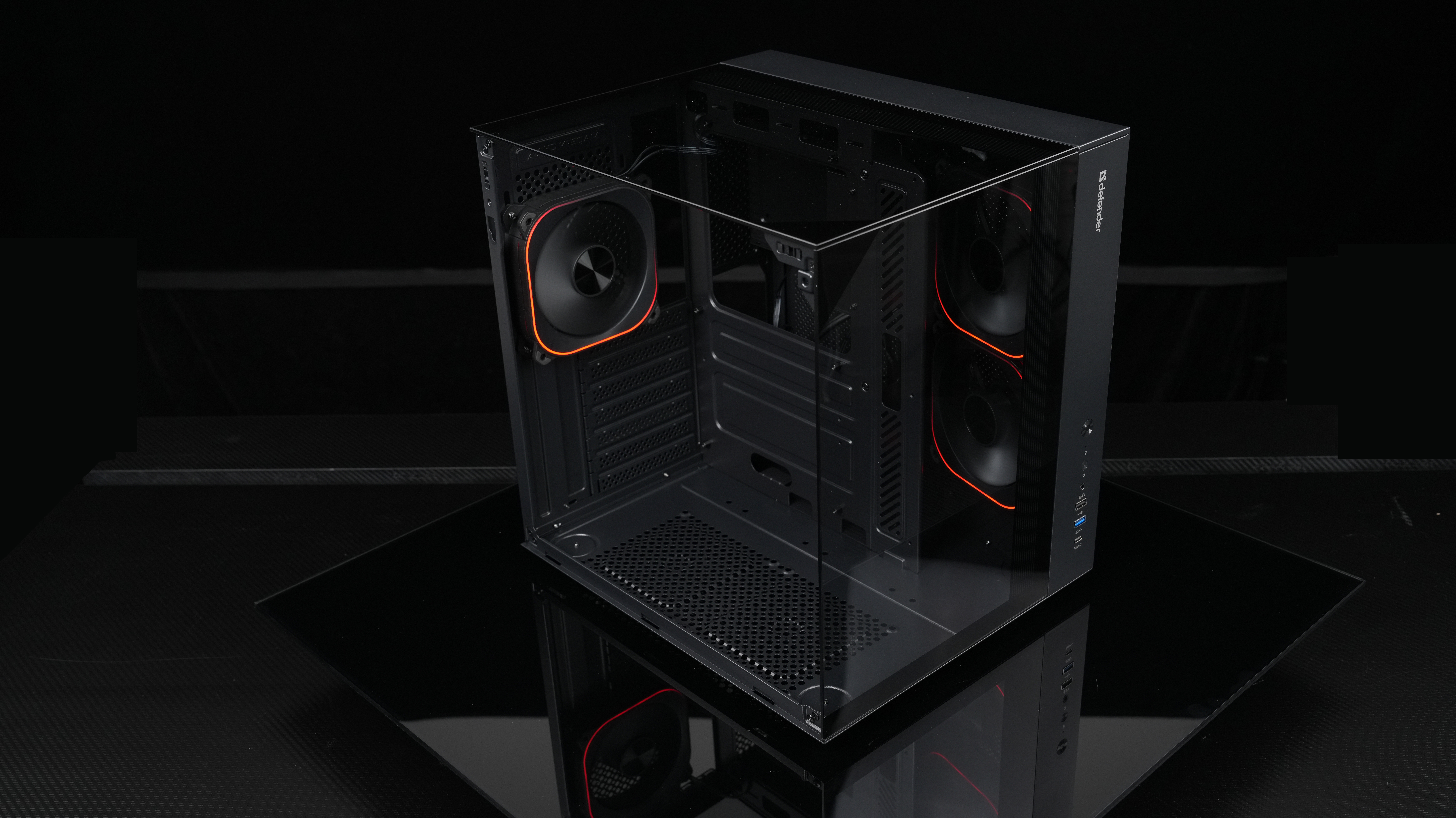 Компактный игровой ATX корпус-куб с большой совместимостью. Безрамный дизайн с тремя панелями из закаленного стекла 3 мм. Вмещает видеокарту до 330 мм и процессорный кулер до 168 мм. Три встроенных ARGB-вентилятора 120 мм с синхронизацией с материнской платой. Поддержка до 5 вентиляторов 120 мм или СЖО 240 мм. USB Type-C и USB 3.0 на передней панели.