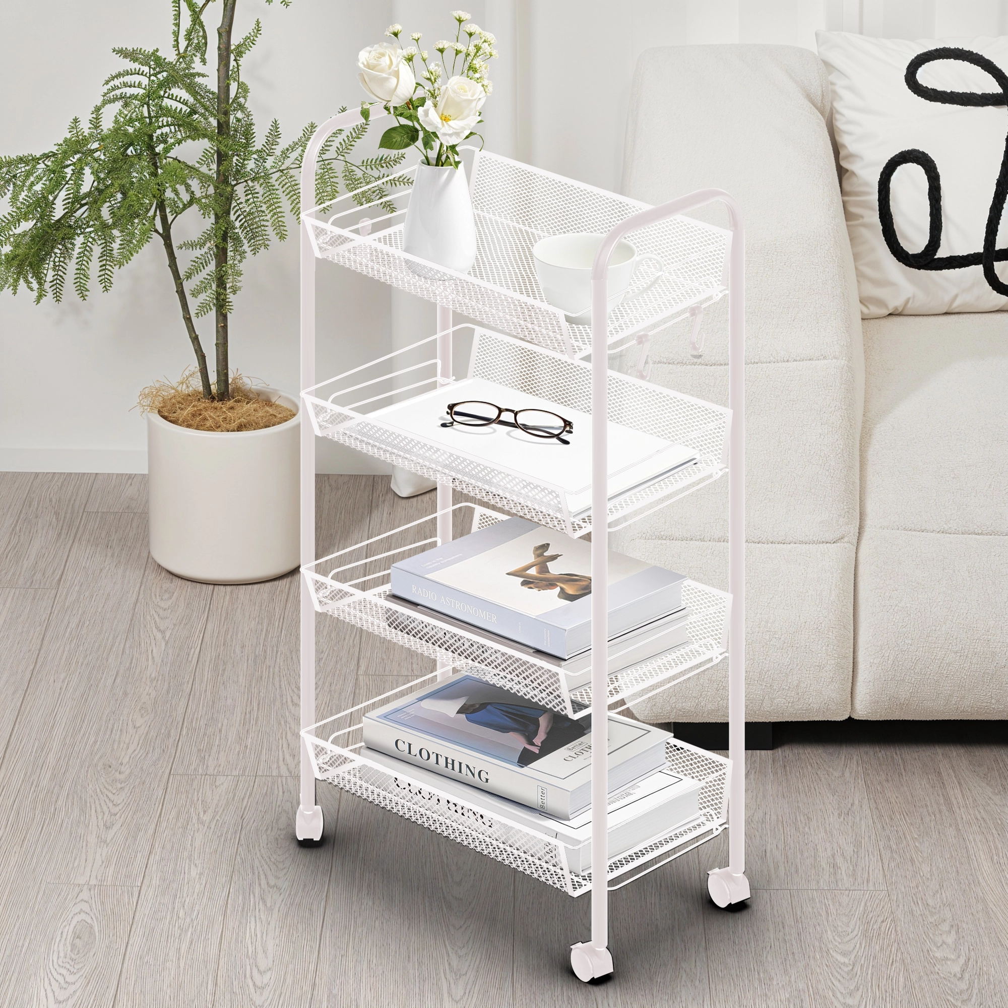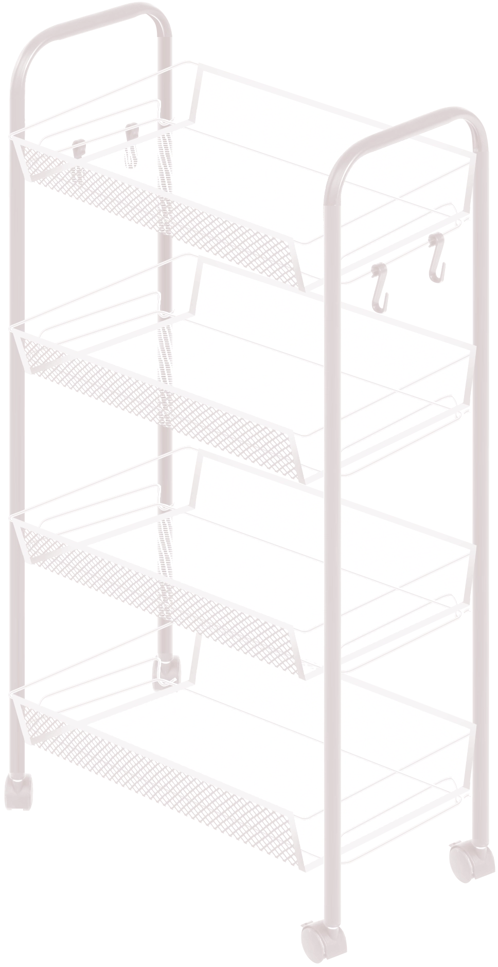 Этажерка Rollie Polly — это маленький мобильный помощник, который оживляет пространство. Прочные металлические прутки и четыре вместительные полки держат всё, что нужно под рукой. А лёгкие колёсики превращают её в подвижный элемент — её легко катить туда, где она нужна прямо сейчас. Rollie Polly словно друг, который всегда рядом, поддерживает порядок и добавляет радости каждому дню. Её игривый дизайн и функциональность делают интерьер живым, удобным и стильным одновременно.