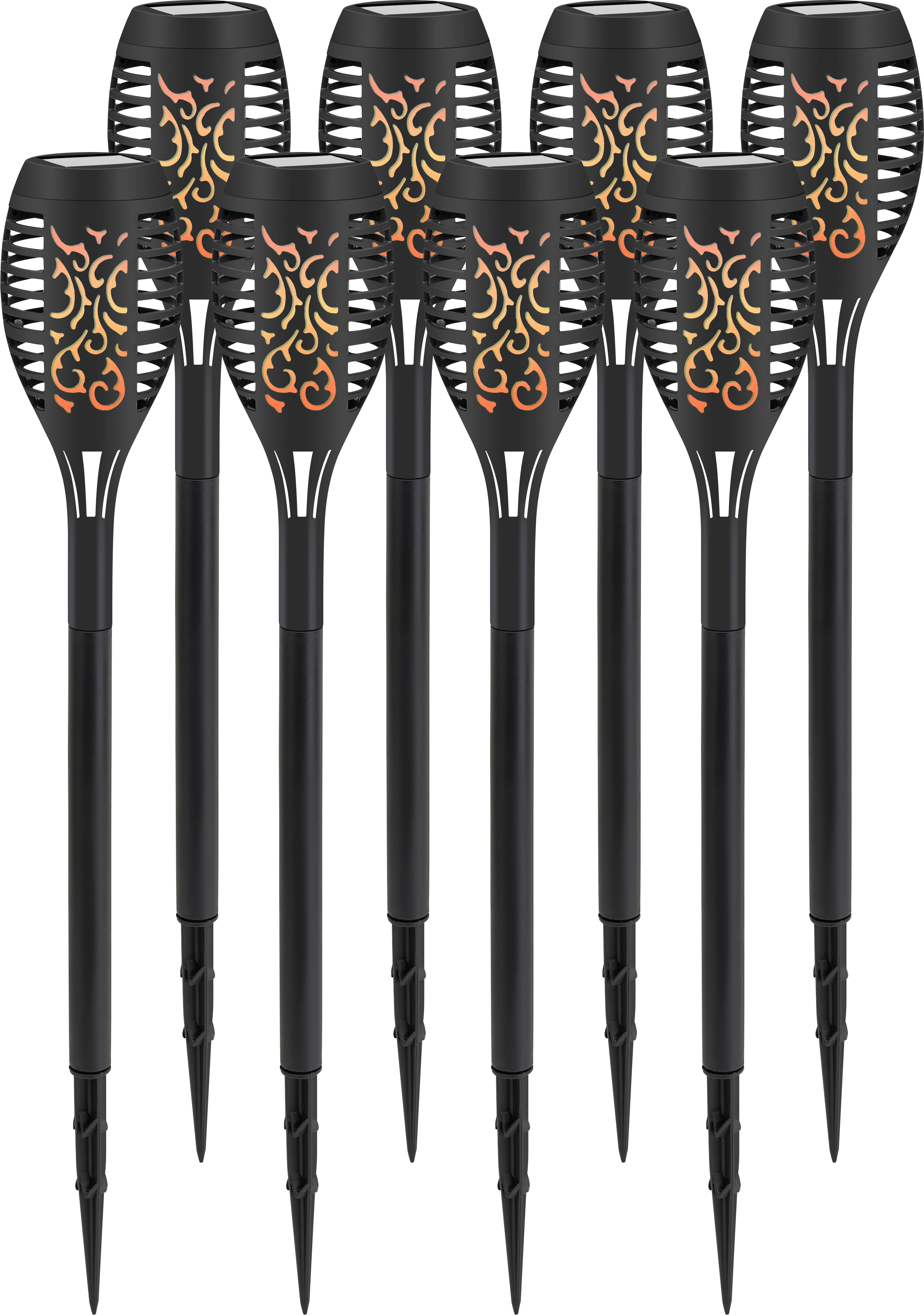 Садовый светодиодный светильник на солнечной батарее с эффектом пламени и датчиком света для декоративного освещения дорожек, клумб и зон отдыха. Работает полностью автономно от встроенной солнечной панели: днём аккумулирует солнечную энергию, а в тёмное время суток автоматически загорается мягким тёплым светом с реалистичным мерцающим эффектом, создавая атмосферу уютного факела. Прочный и лёгкий корпус из ABS-пластика с защитой IP54 позволяет использовать светильник на улице в любую погоду. Лёгкая установка в грунт без проводов и инструментов делает его удобным решением для сада или террасы. Работает до 6–8 часов от встроенной Ni-MH батареи.