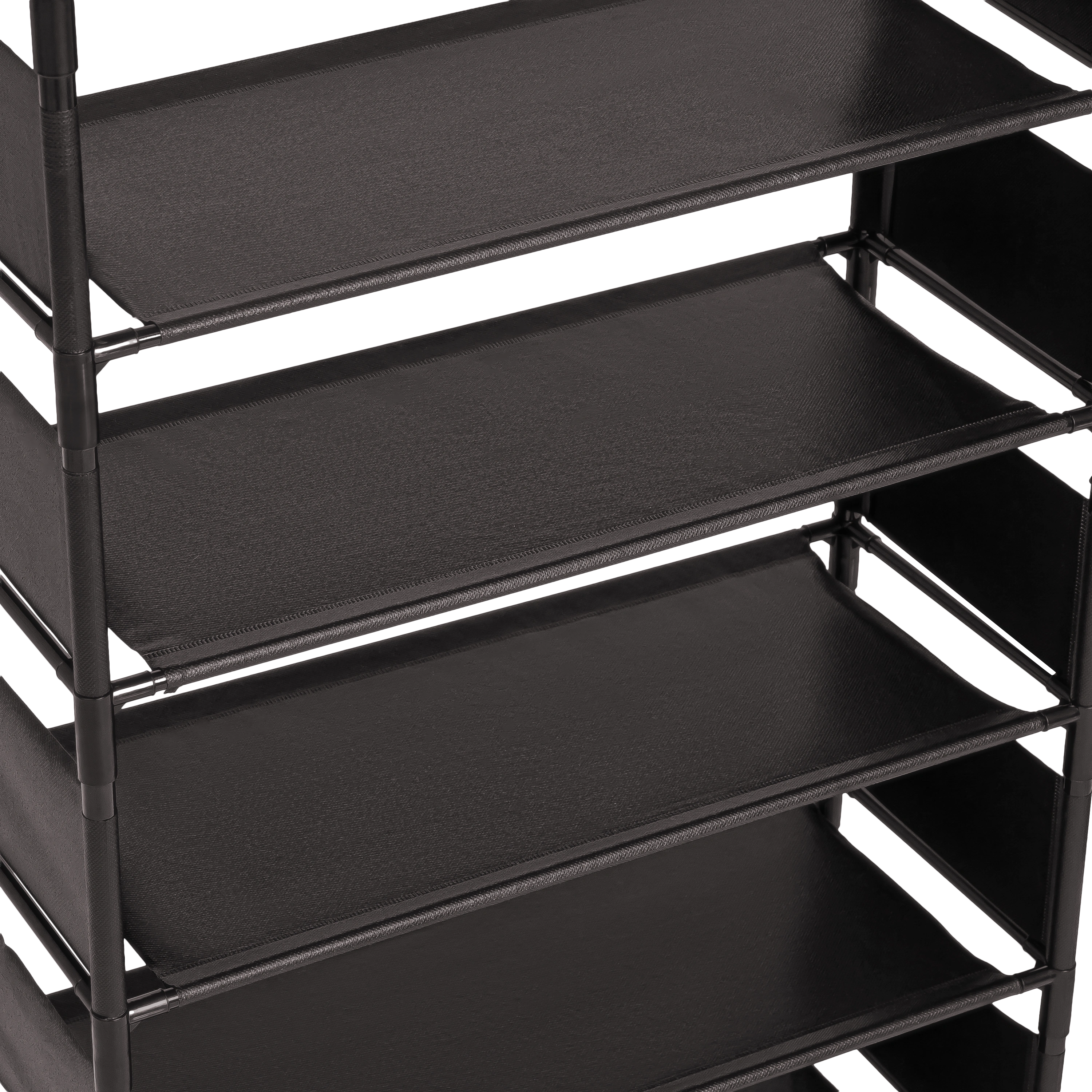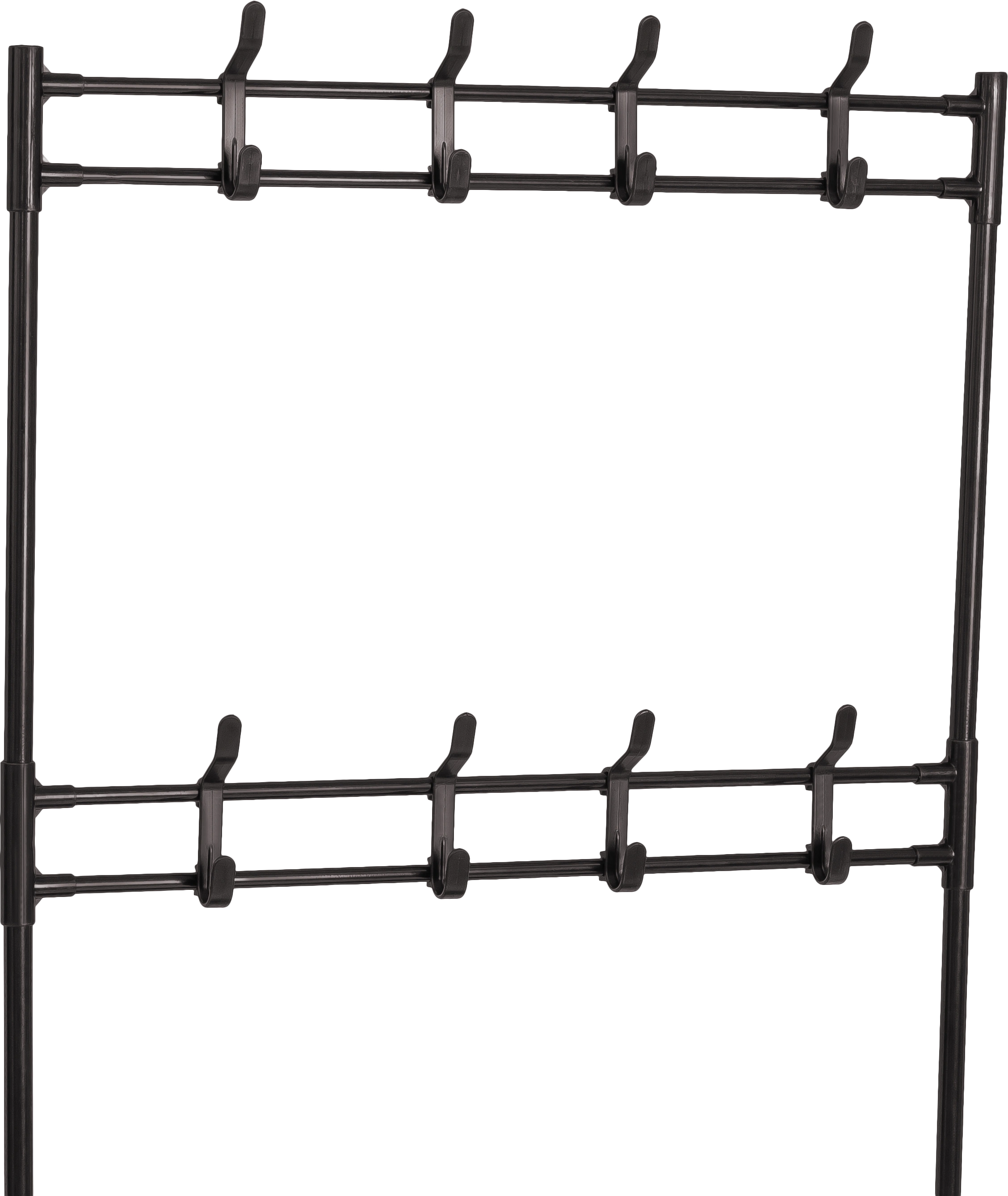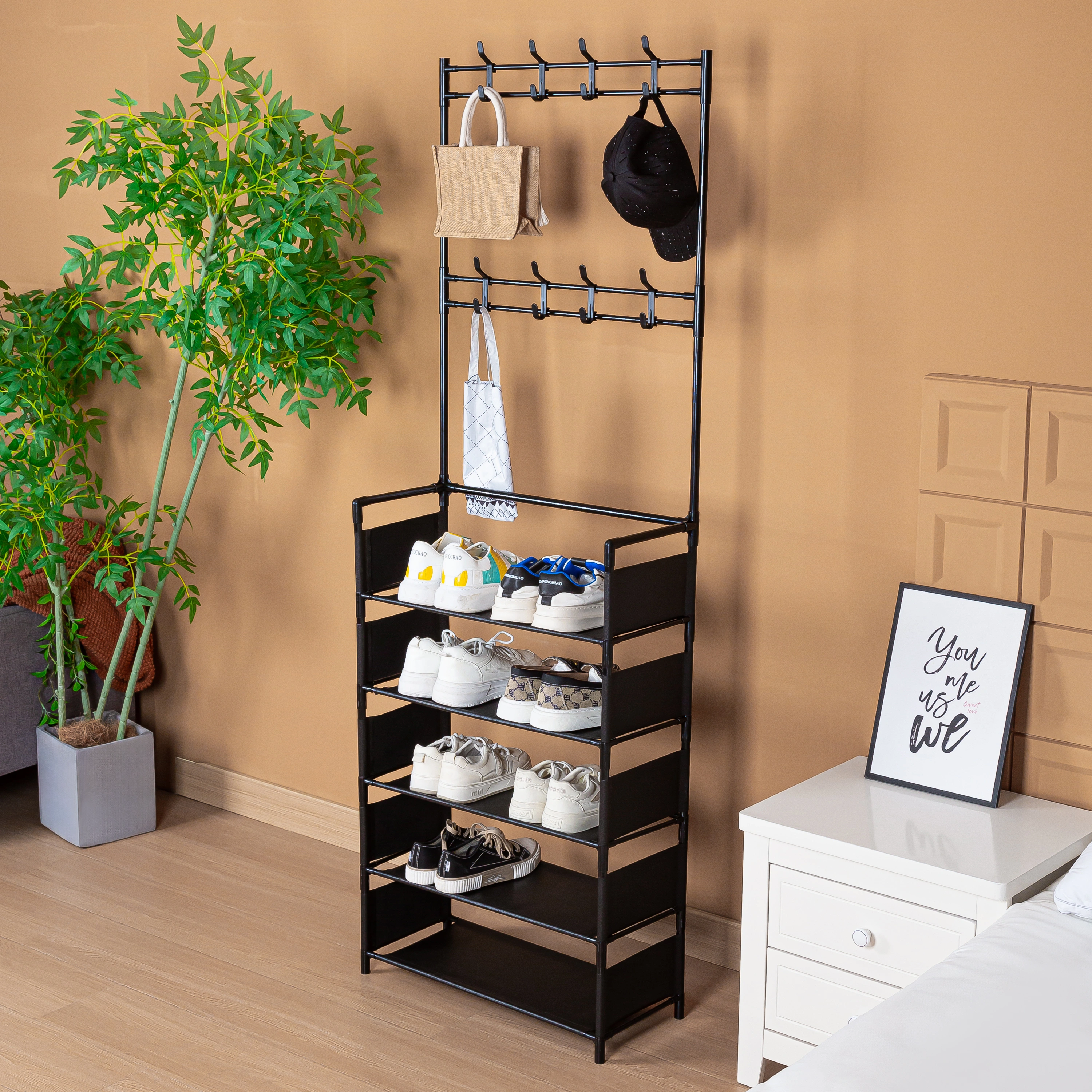 Эта вешалка для обуви с полками и крючками идеально подходит для организации вашего пространства. С пятью вместительными полками для обуви и несколькими крючками для сумок, шапок и других аксессуаров, она поможет поддерживать порядок в прихожей, коридоре или даже в спальне. Легкая и компактная конструкция позволяет разместить её в любом месте вашего дома, а стильный черный цвет и современный дизайн хорошо впишутся в любой интерьер. Изготовлена из прочного материала, эта вешалка будет служить вам долго, создавая порядок и удобство в повседневной жизни.