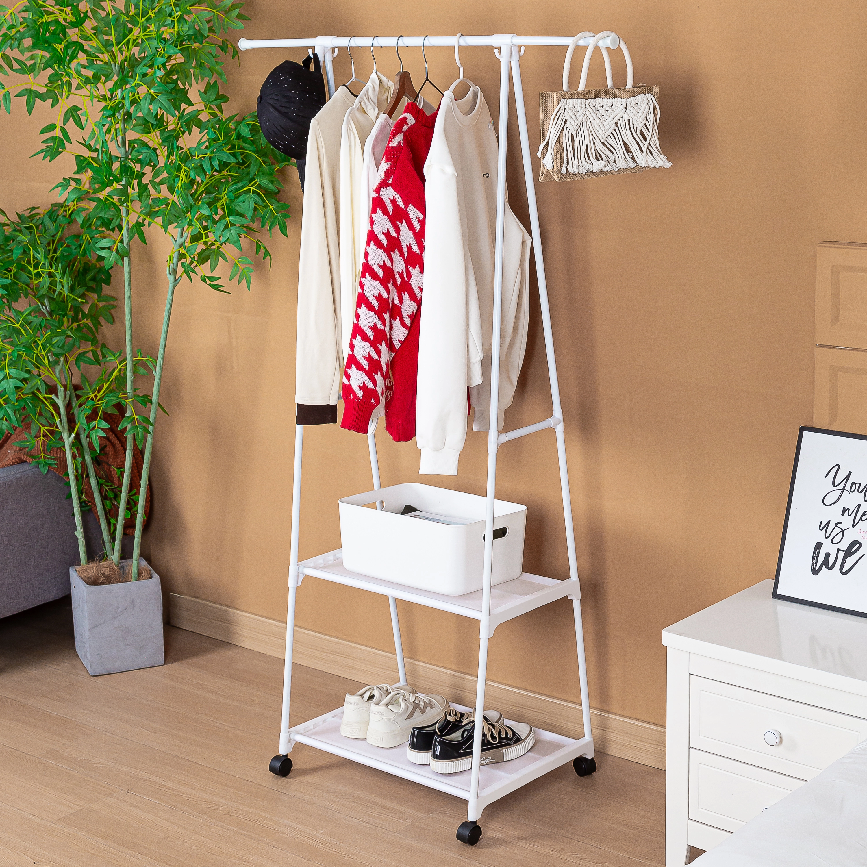 Эта стильная и функциональная напольная вешалка станет отличным дополнением вашего интерьера. Благодаря компактному и современному дизайну, она идеально впишется в любую комнату. Снизу размещены 2 вместительные полки для одежды и аксессуаров, а сверху — вешалка для верхней одежды и сумок. Благодаря колесам вешалку легко перемещать с места на место, а белый цвет и минималистичный дизайн делают вешалку универсальной для любых интерьерных решений.