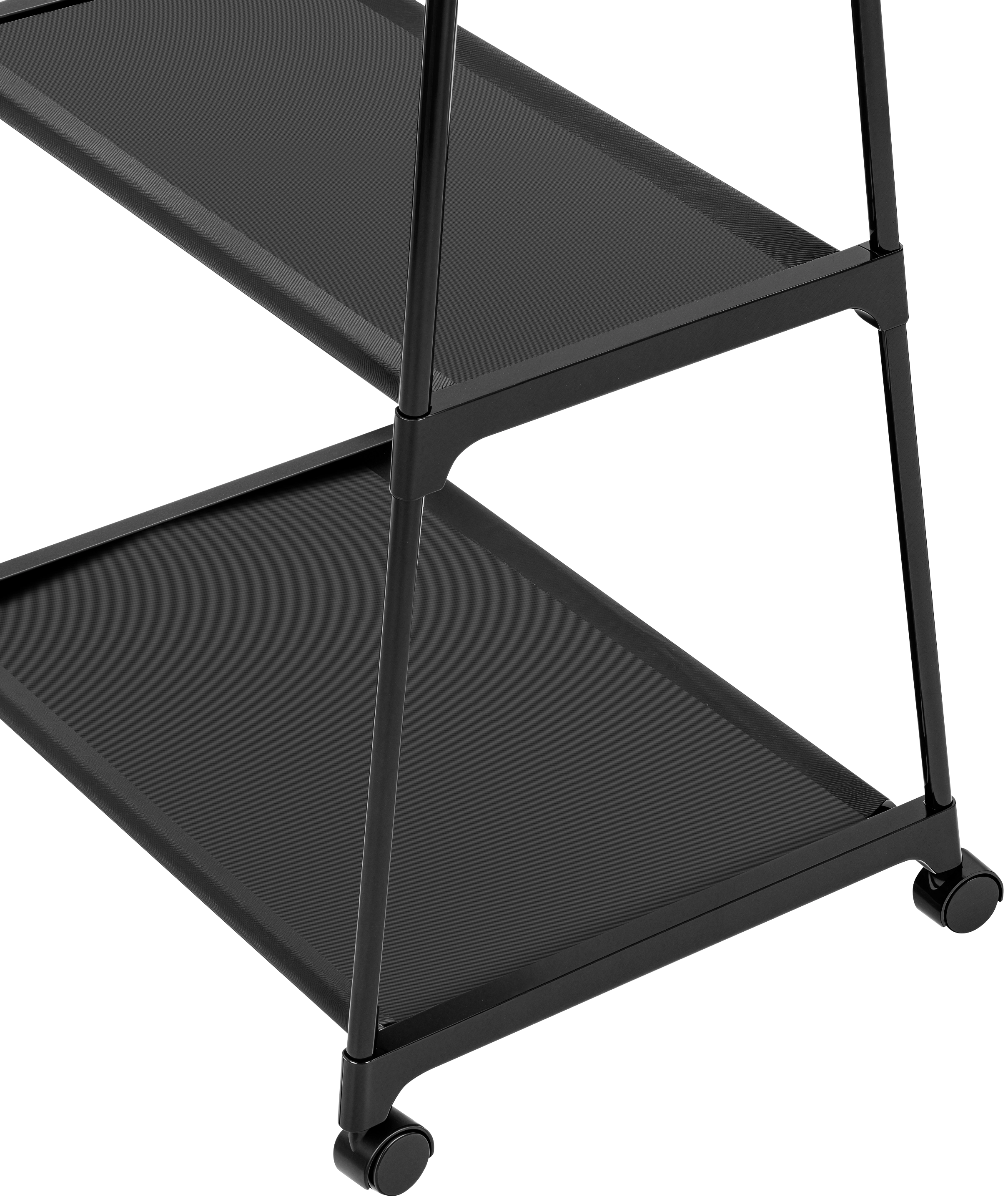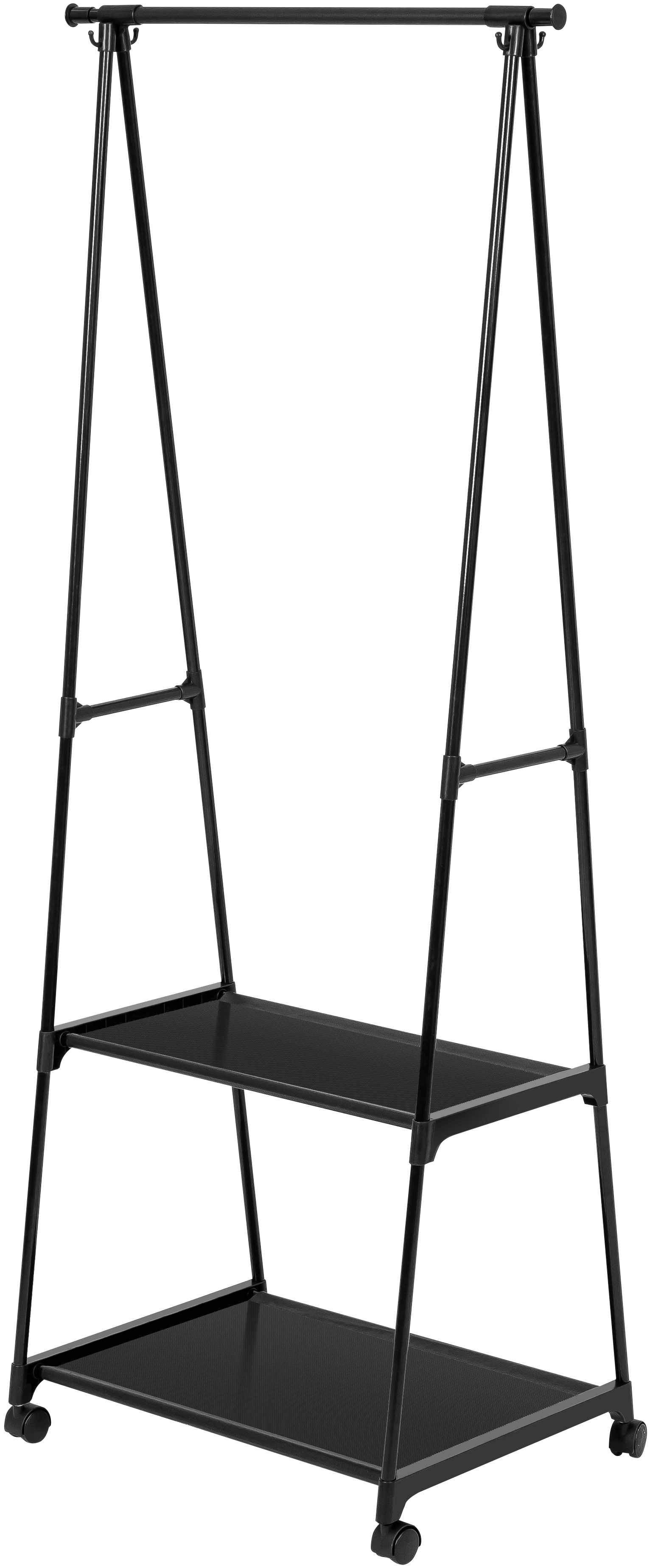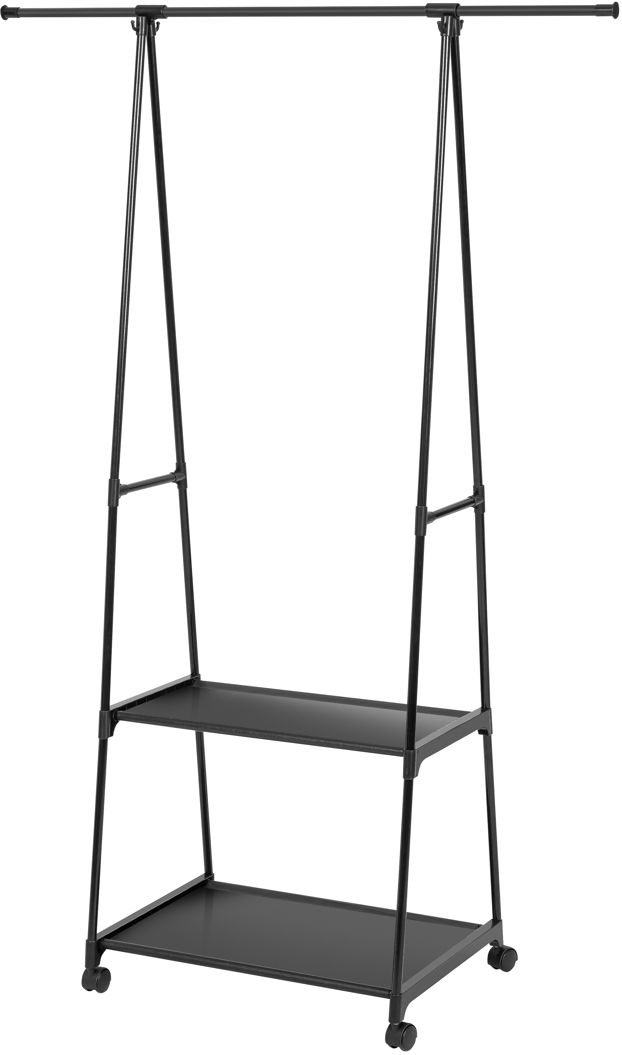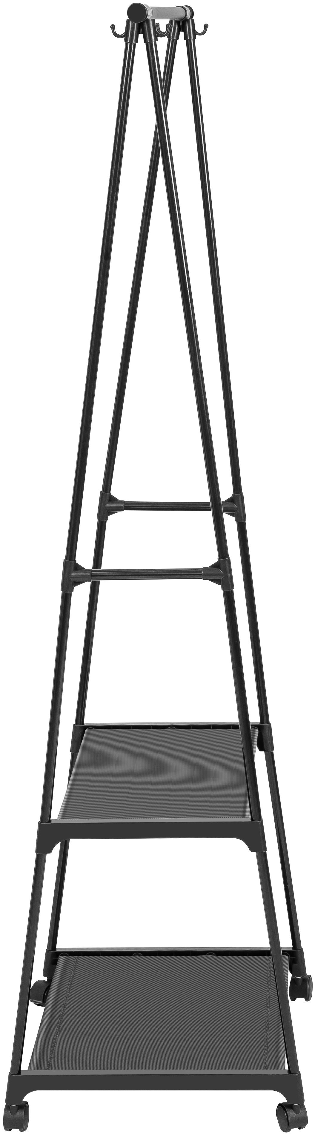 Эта стильная и функциональная напольная вешалка станет отличным дополнением вашего интерьера. Благодаря компактному и современному дизайну, она идеально впишется в любую комнату. Снизу размещены 2 вместительные полки для одежды и аксессуаров, а сверху — вешалка для верхней одежды и сумок. Благодаря колесам вешалку легко перемещать с места на место, а черный цвет и минималистичный дизайн делают вешалку универсальной для любых интерьерных решений.