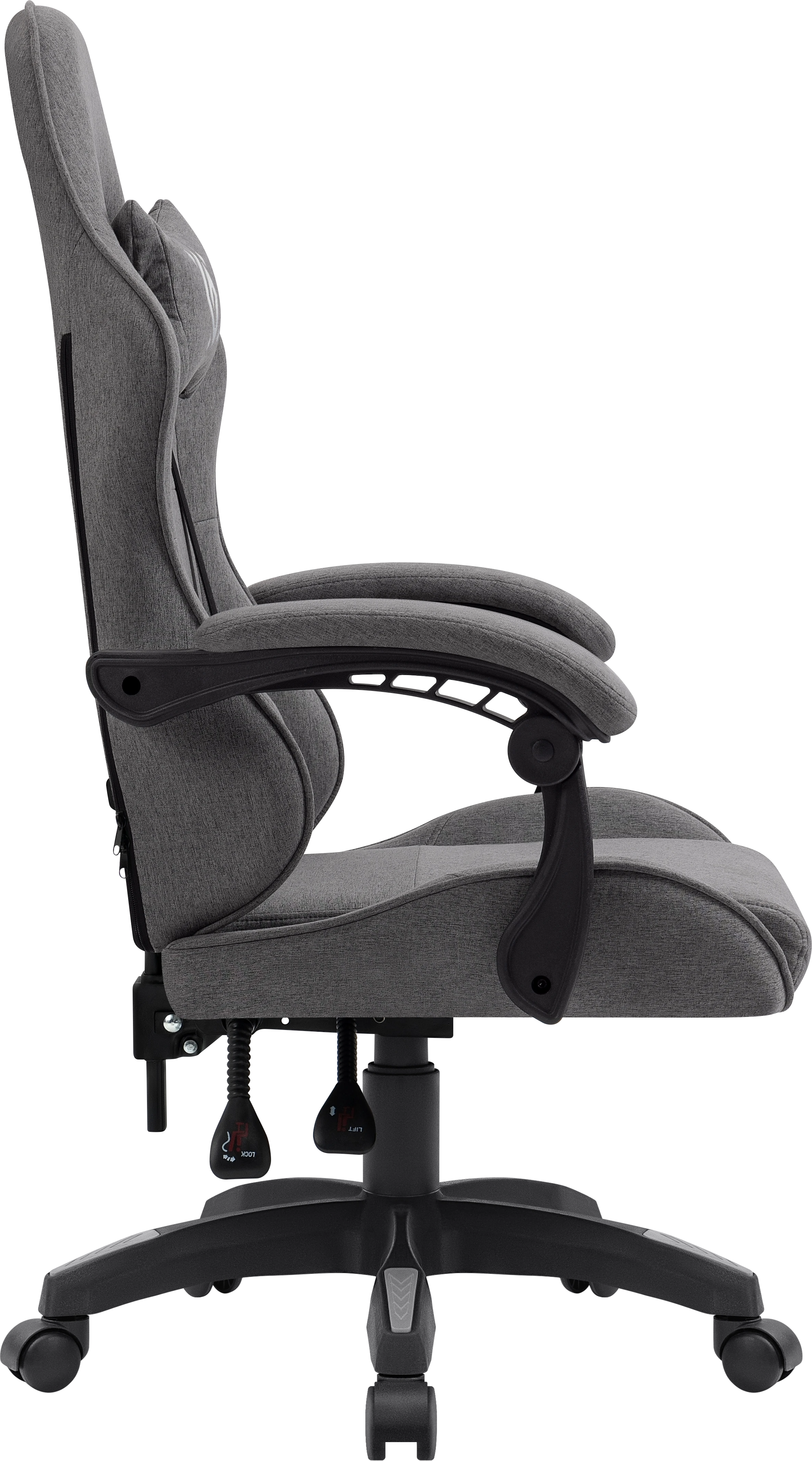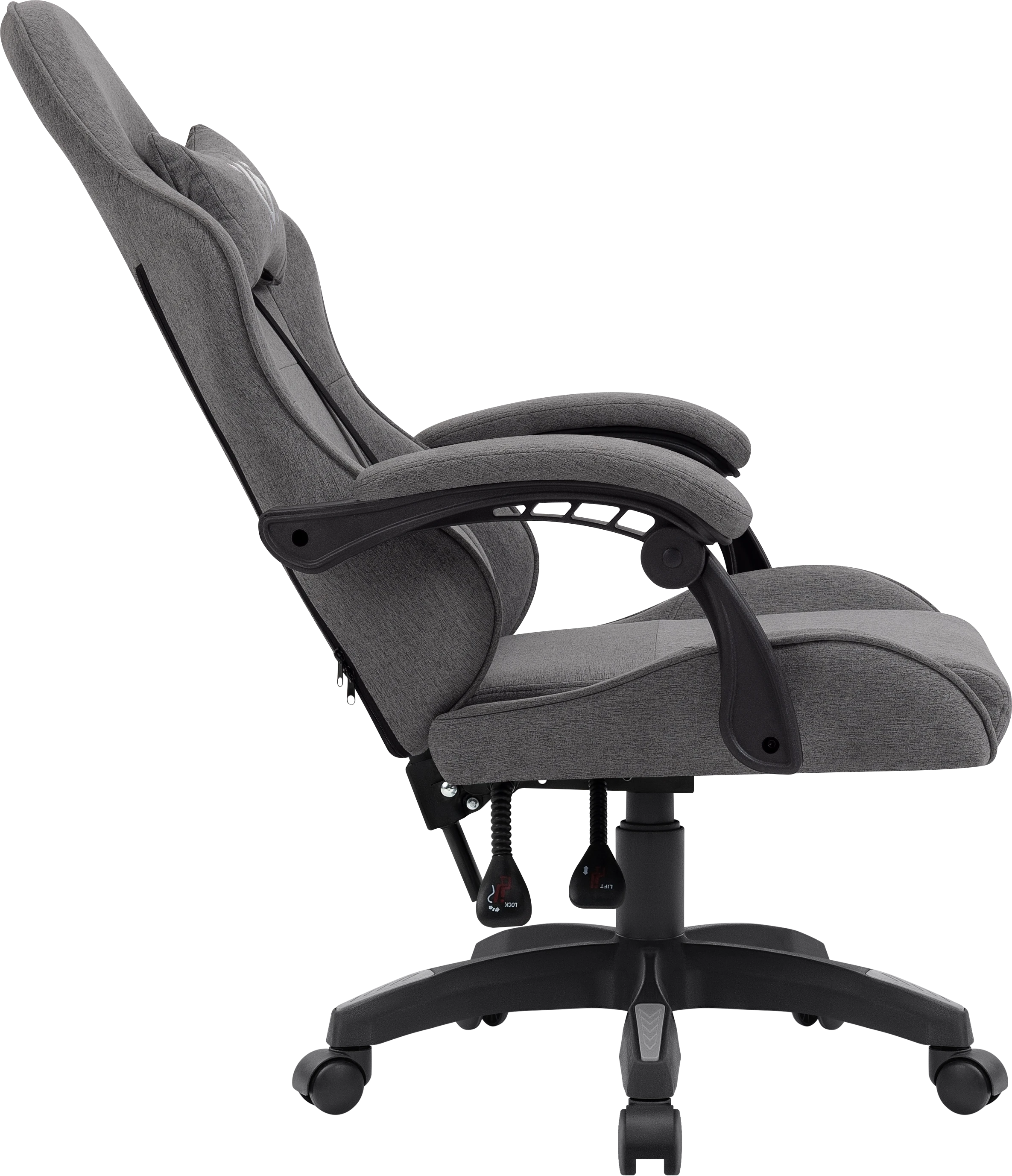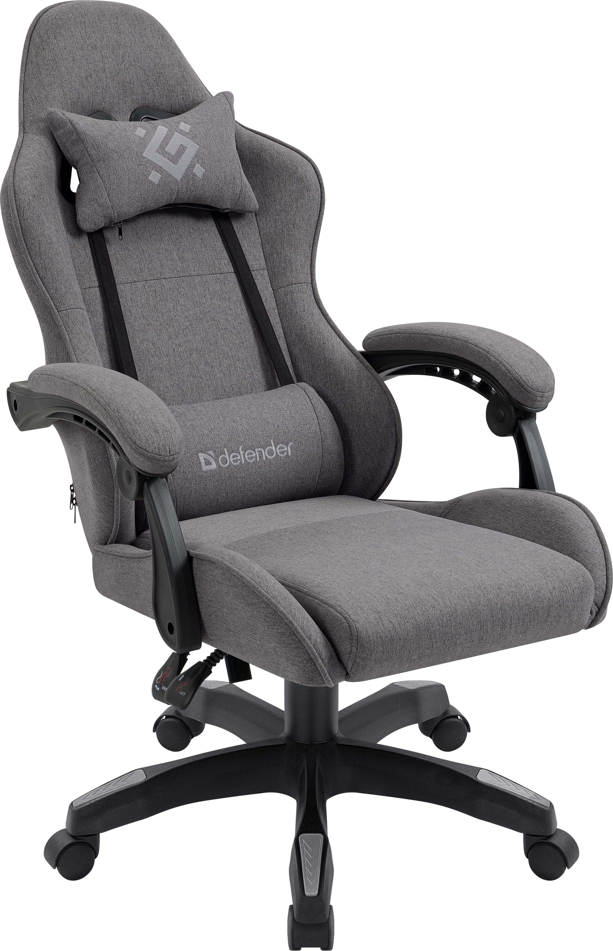 Эргономичное геймерское кресло с обивкой из прочного износостойкого текстиля. Регулируемый наклон спинки и мягкие подлокотники обеспечивают максимальный комфорт для пользователя в течение длительного времени. В комплект поставки входит поясничная подушка с функцией вибромассажа.