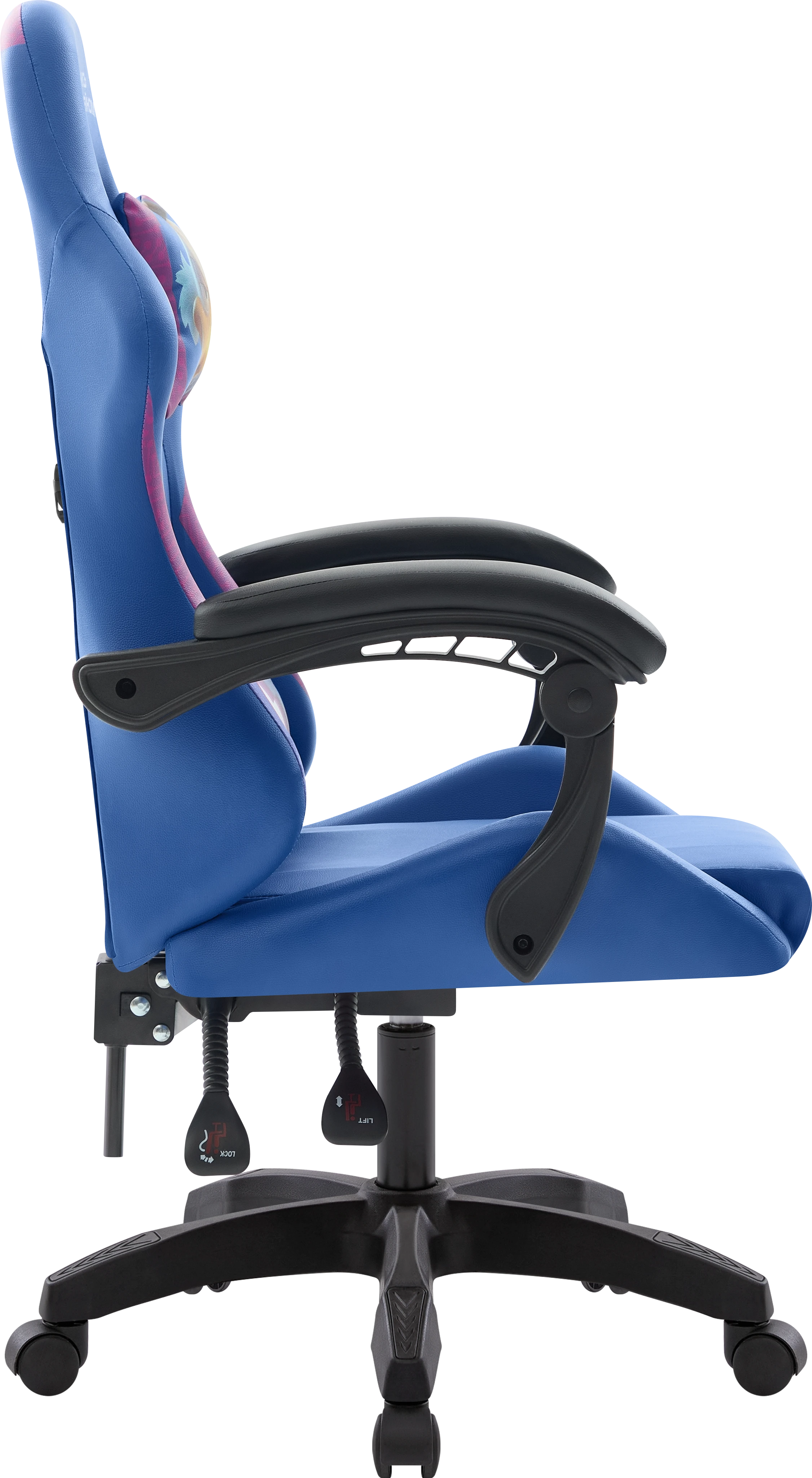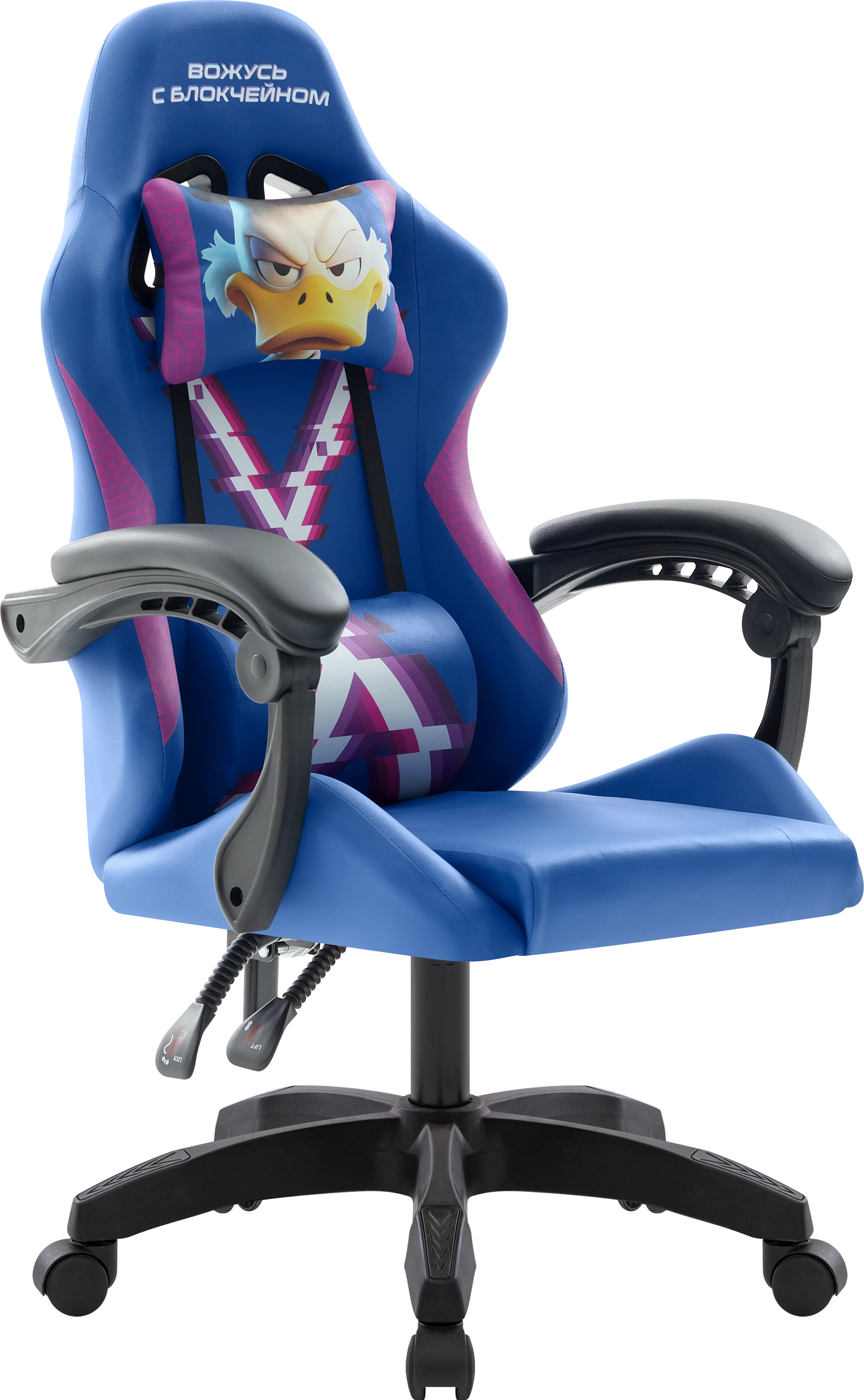 Стильное игровое кресло с мягкими подлокотниками и регулируемым наклоном спинки. В комплект входят шейная и поясничная подушки. Обивка выполнена из прочной мягкой экокожи.