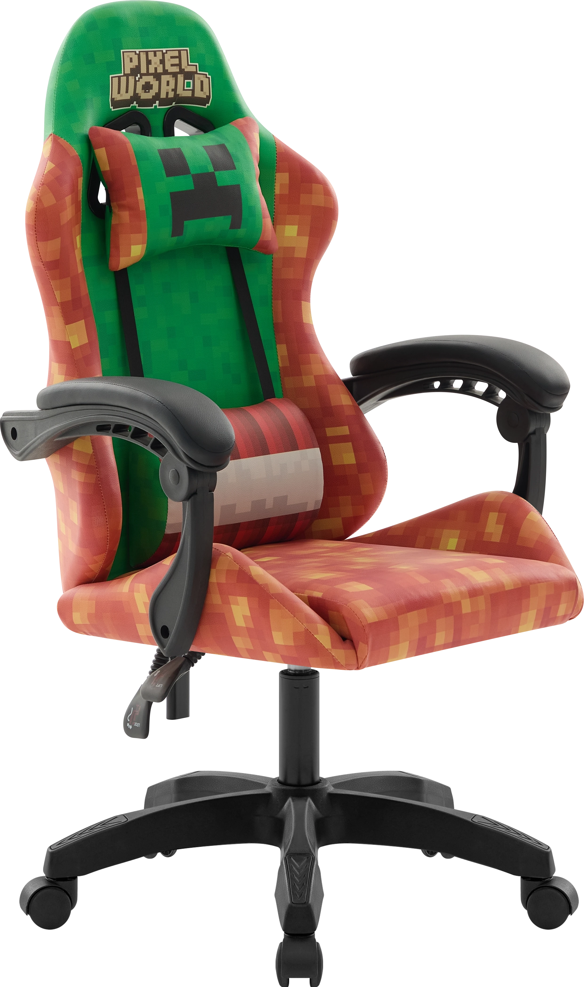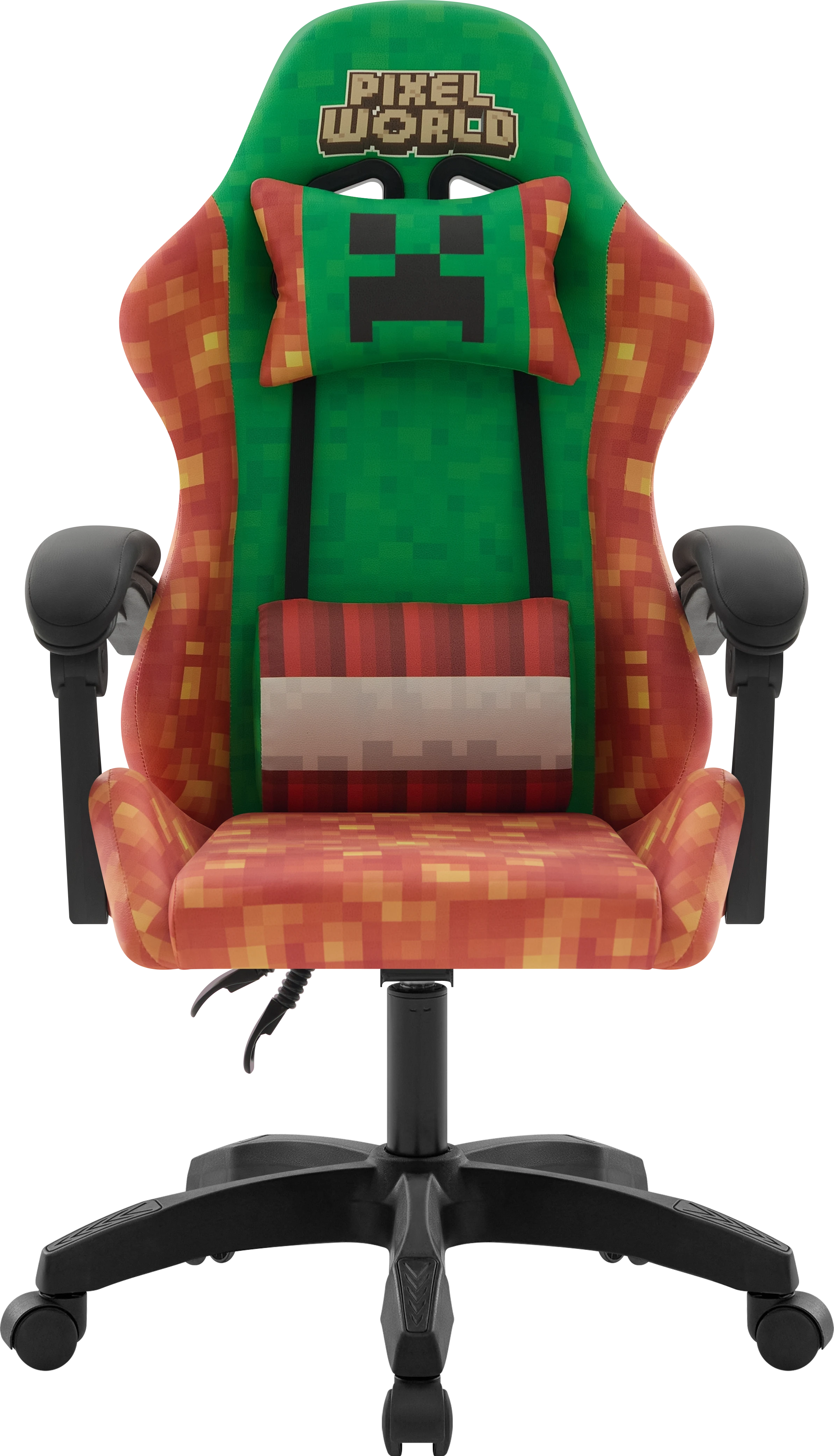 Стильное игровое кресло с мягкими подлокотниками и регулируемым наклоном спинки. В комплект входят шейная и поясничная подушки. Обивка выполнена из прочной мягкой экокожи.