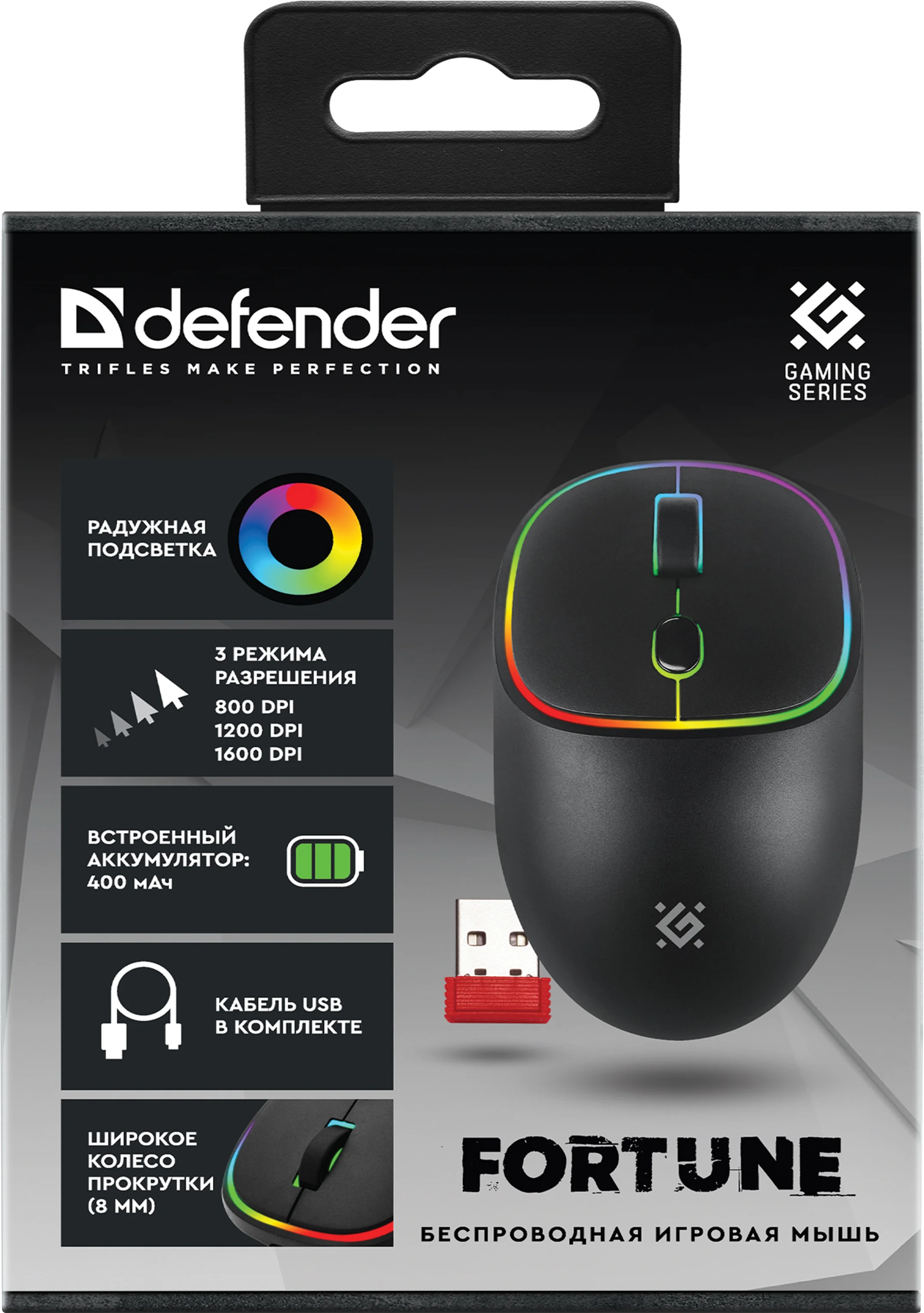 Стильная беспроводная игровая мышь. Модель имеет радужную подсветку, 3 режима разрешения, встроенный аккумулятор на 400 мАч и приятное на ощупь покрытие soft touch. Cимметричная форма мыши будет удобна для работы как правой, так и левой рукой.