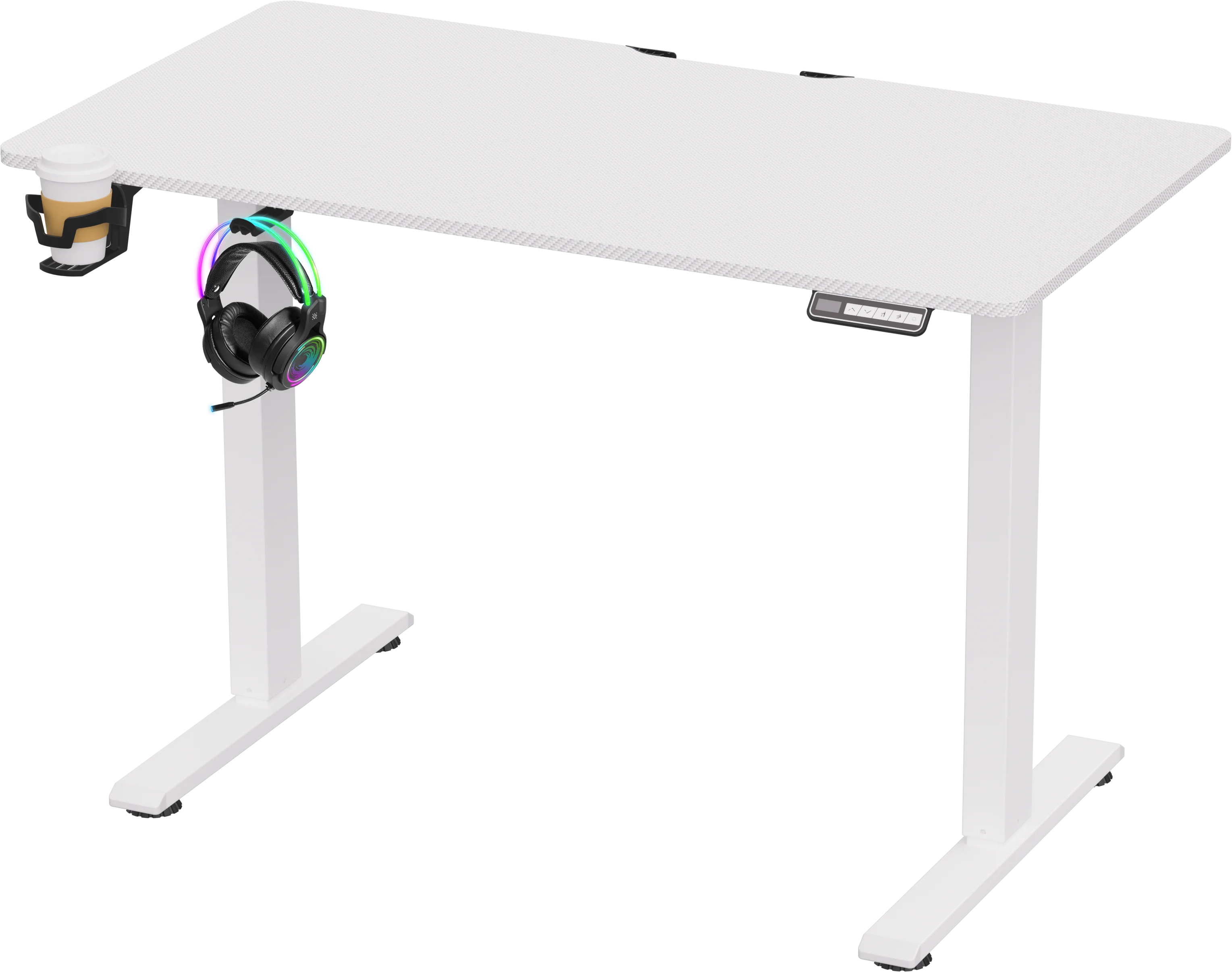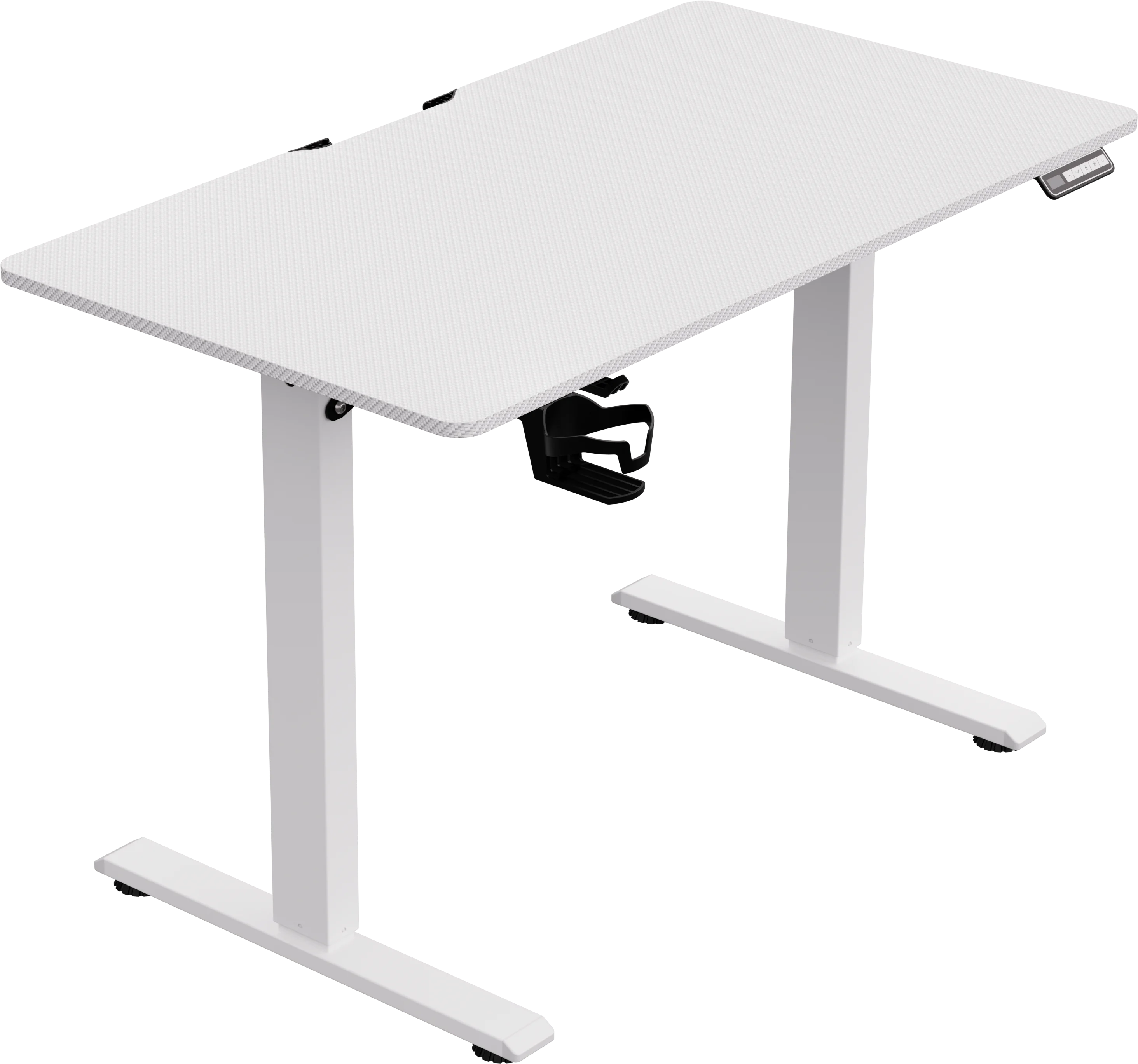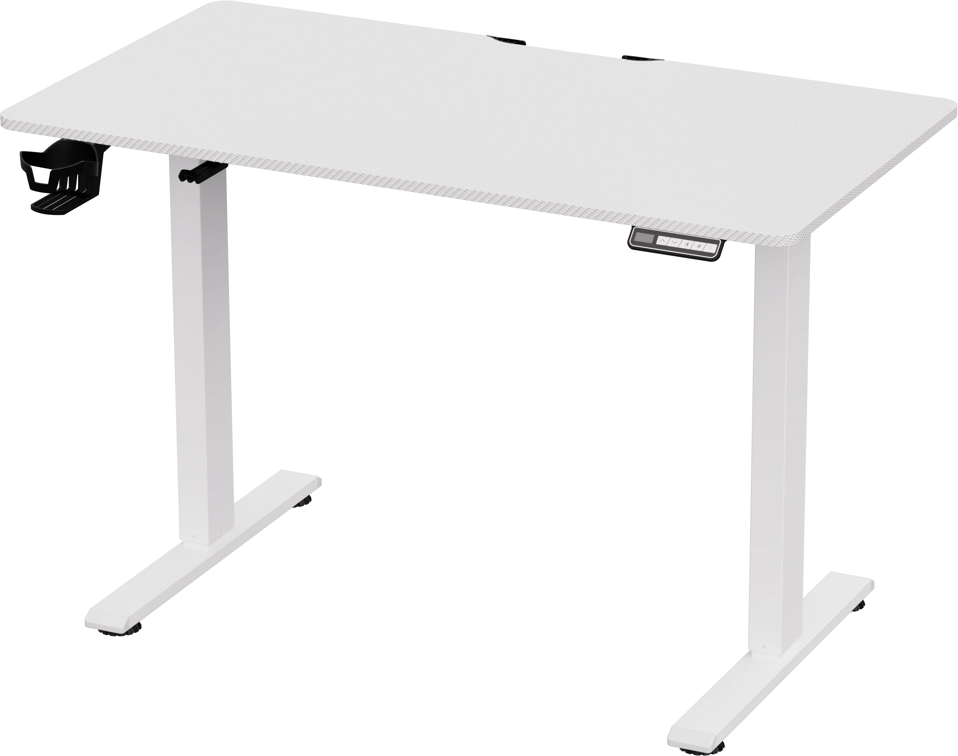 Регулируемый по высоте геймерский стол с возможностью хранения в памяти двух заданных уровней высоты. Пользователь может выбрать максимально удобную высоту стола для работы как сидя, так и стоя. Мощный мотор обеспечивает плавный подъем столешницы на нужный уровень в диапазоне 72-117 см. Столешница покрыта прочной меламиновой пленкой с текстурой "под карбон". Размер столешницы 110*60 см.
