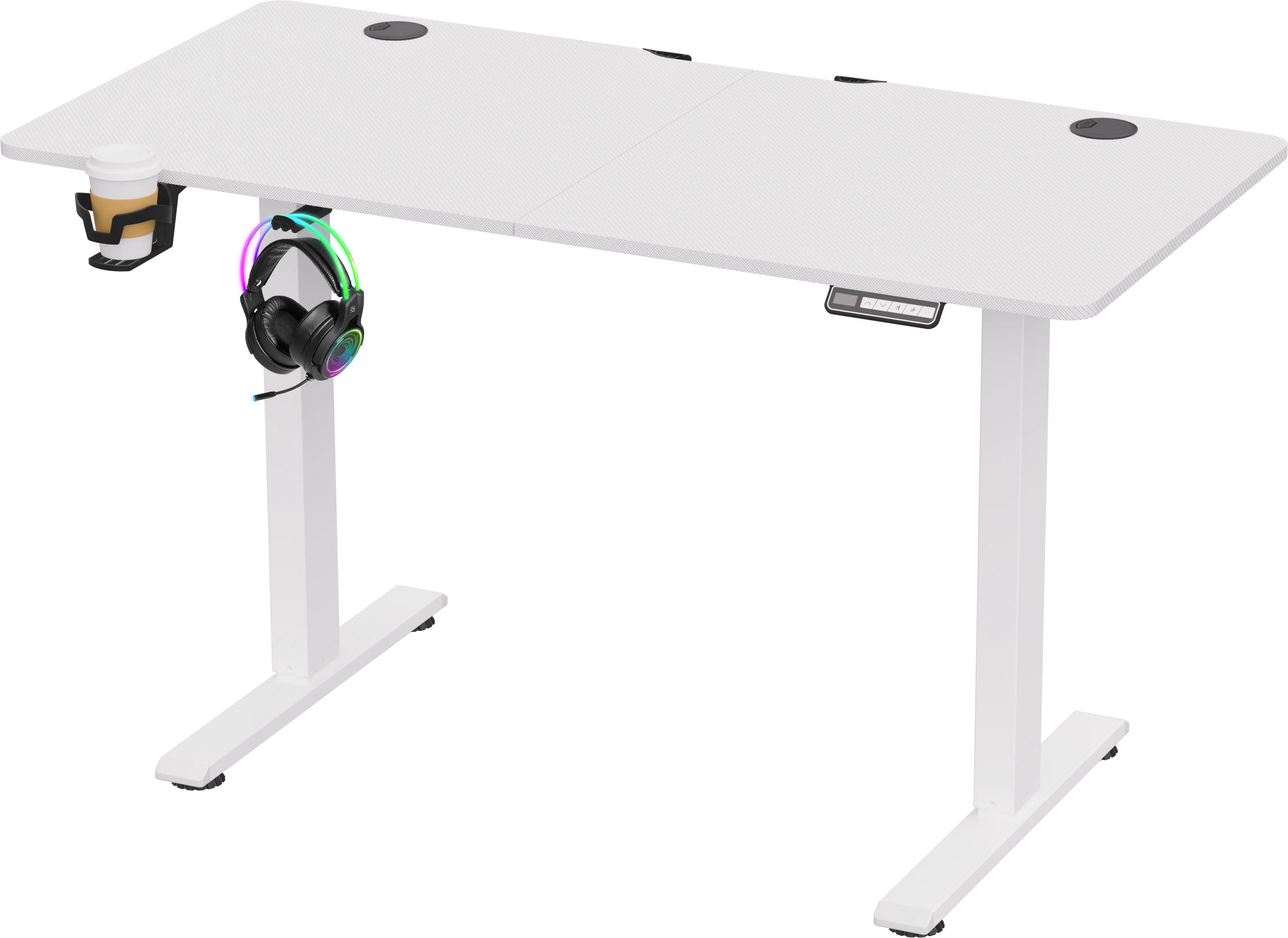 Регулируемый по высоте геймерский стол с возможностью хранения в памяти двух заданных уровней высоты. Пользователь может выбрать максимально удобную высоту стола для работы как сидя, так и стоя. Мощный мотор обеспечивает плавный подъем столешницы на нужный уровень в диапазоне 72-117 см. Столешница покрыта прочной меламиновой пленкой с текстурой "под карбон". Размер столешницы 120*60 см.