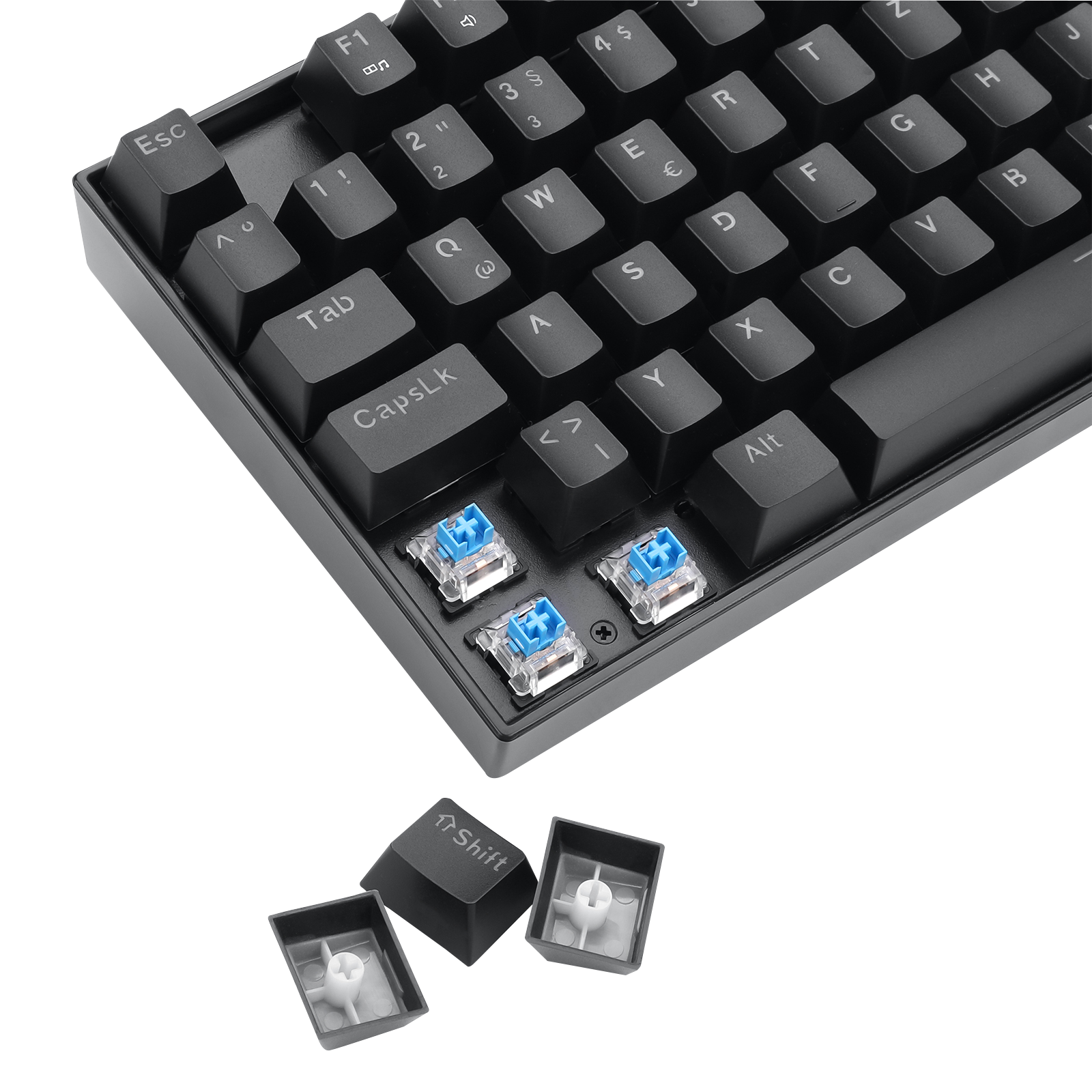 Полноразмерная механическая клавиатура с кликающими свитчами OUTEMU Blue и регулируемой RGB подсветкой. Клавиатура имеет надежную влагоустойчивую конструкцию. Поддержка Anti Ghost технологии для всех клавиш и блокировка клавиши Win во время игр. Пуллеры для кейкапов и свитчей в комплекте.