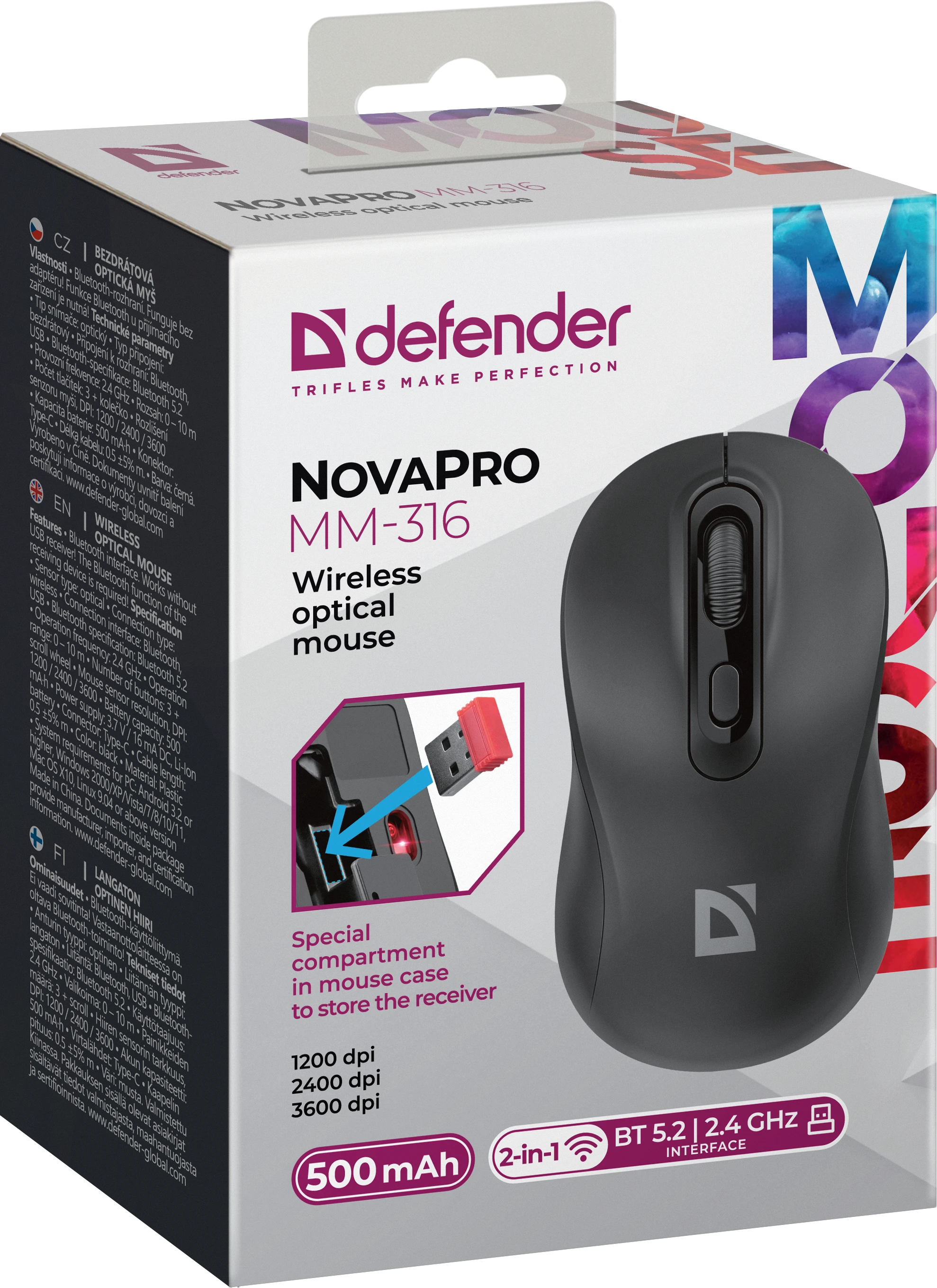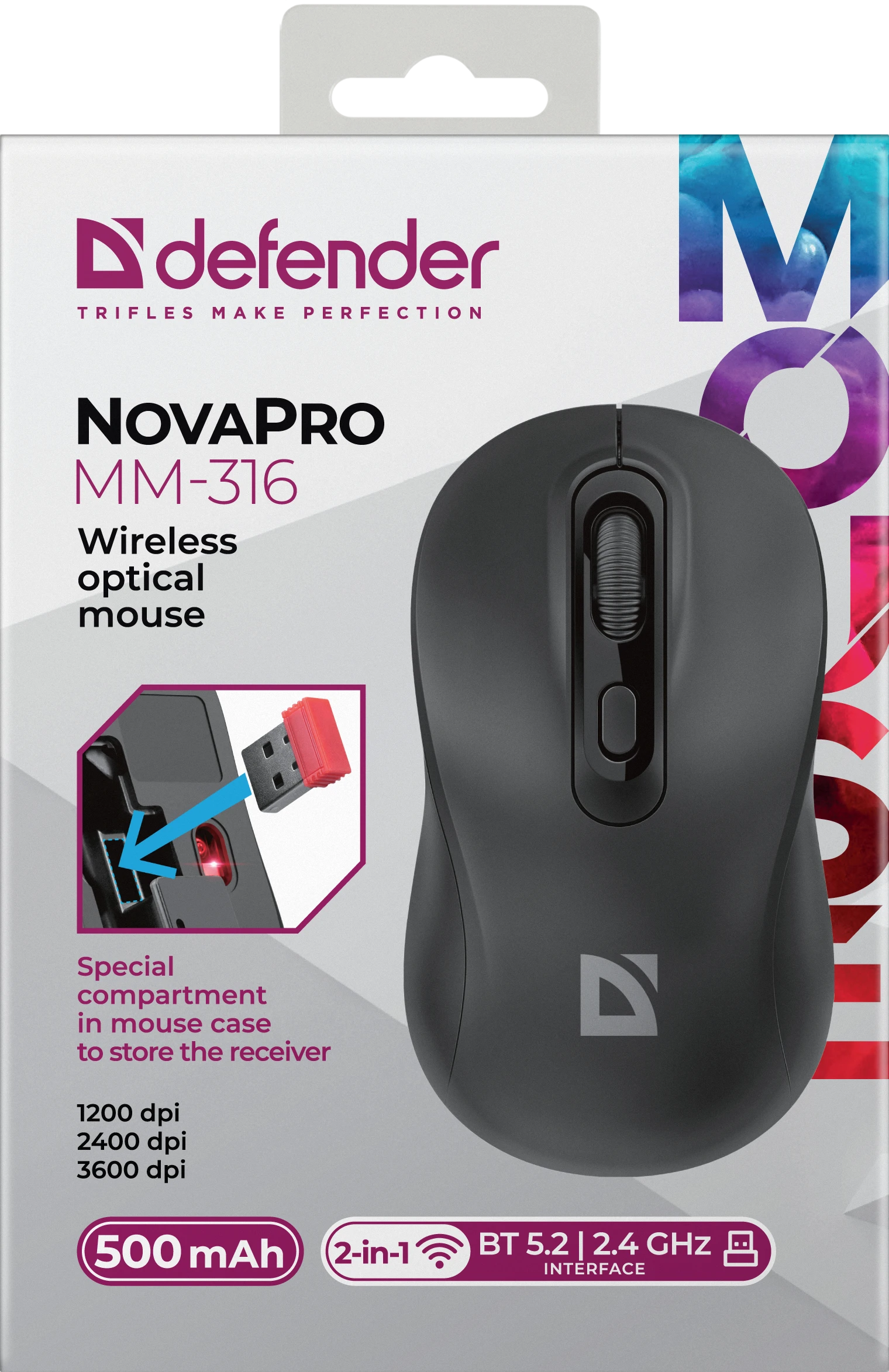 Стильная мышка с возможностью подключения к устройствам по Bluetooth или по радио-каналу 2.4ГГц (через USB-адаптер). Данная модель имеет симметричную форму удобную для работы любой рукой и встроенный аккумулятор на 500 мАч.