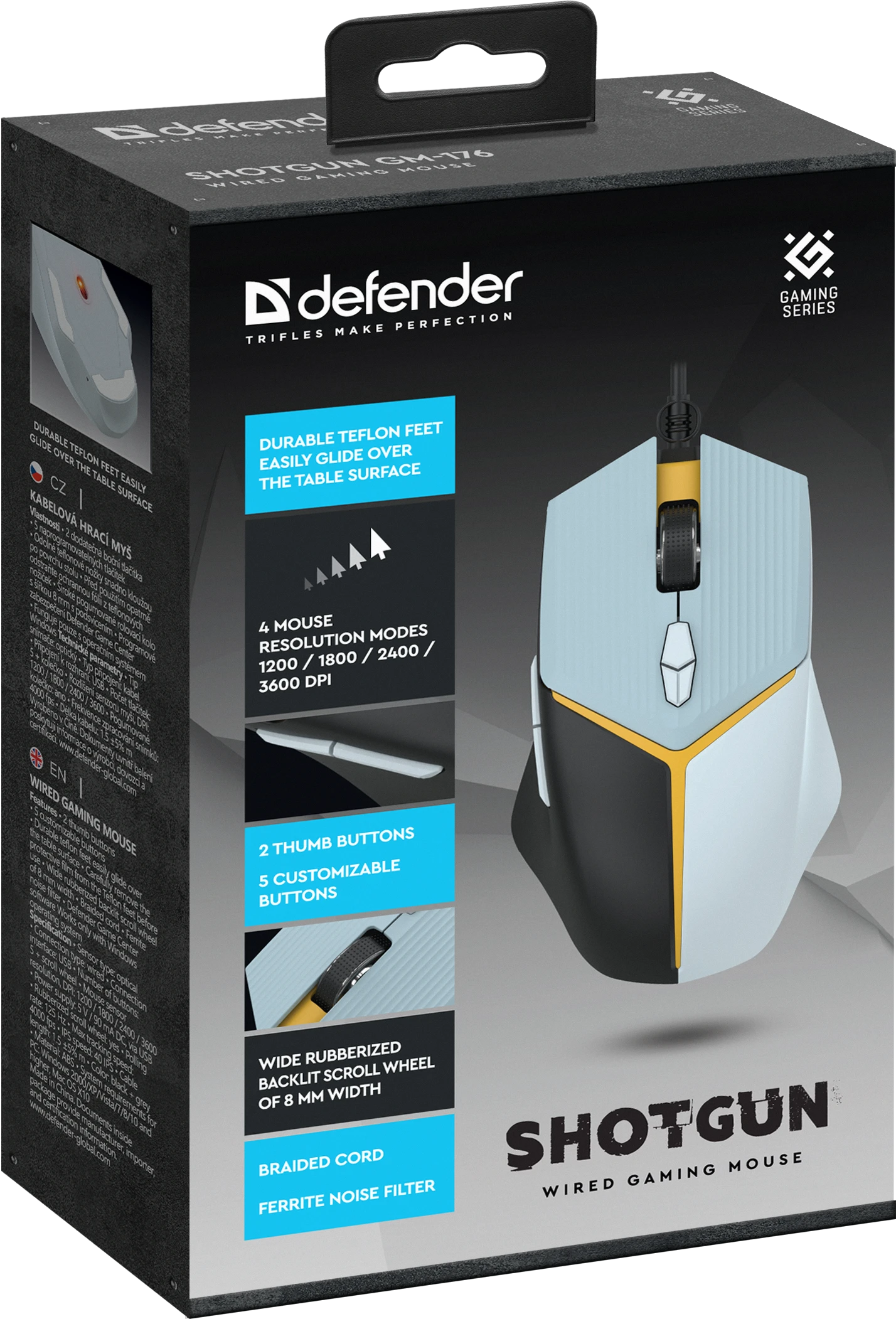 Удобная проводная игровая мышь с 4 режимами разрешения. У мыши Shotgun GM-176 есть боковые кнопки "Вперед" и "Назад" и тефлоновые ножки для быстрого скольжения.