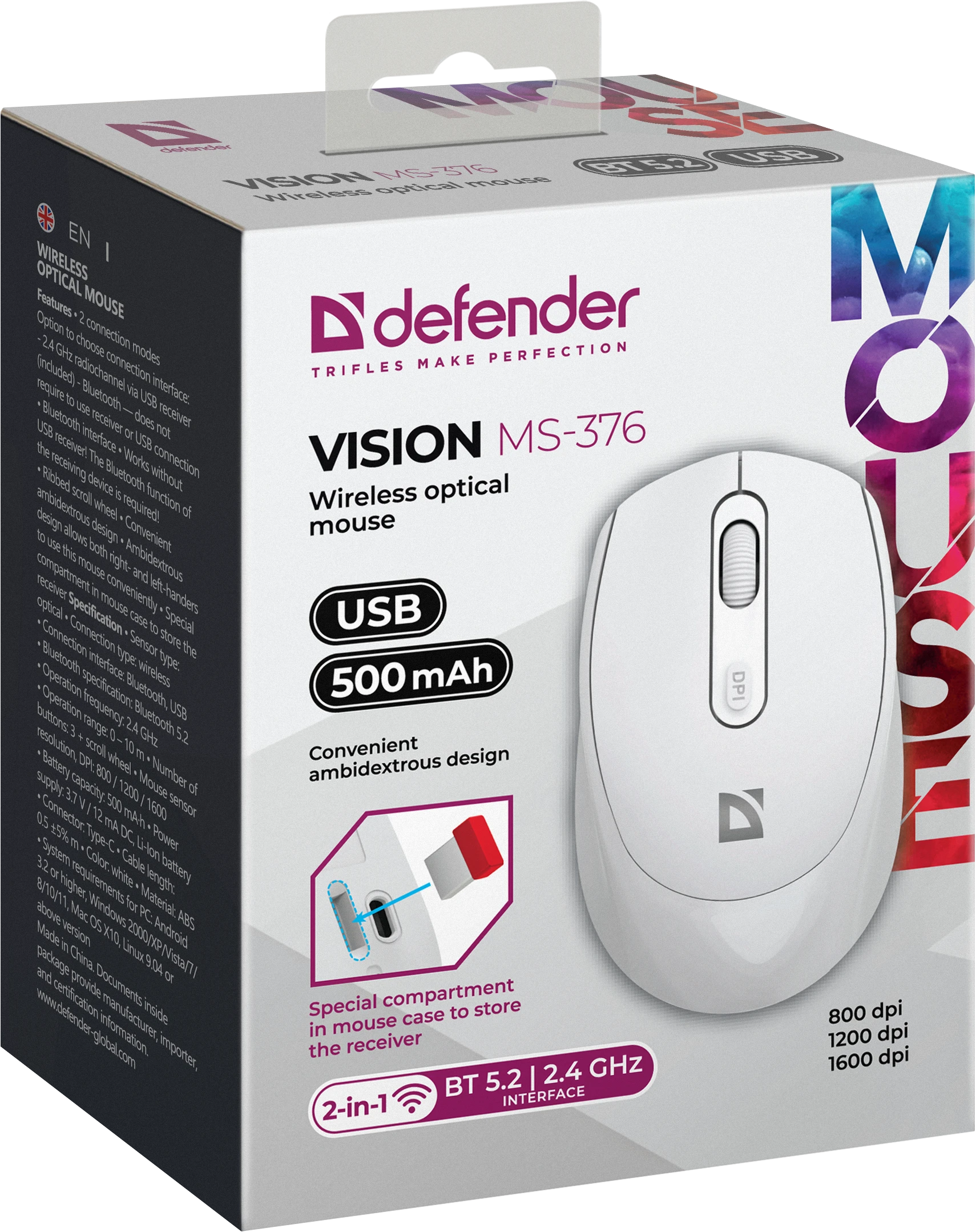 Беспроводная офисная мышь с двумя режимами подключения: по радиоканалу 2,4ГГц или по Bluetooth. Данная модель имеет симметричную форму удобную для работы как правой, так и левой рукой, 3 режима разрешения, а также встроенный аккумулятор на 500 мАч.