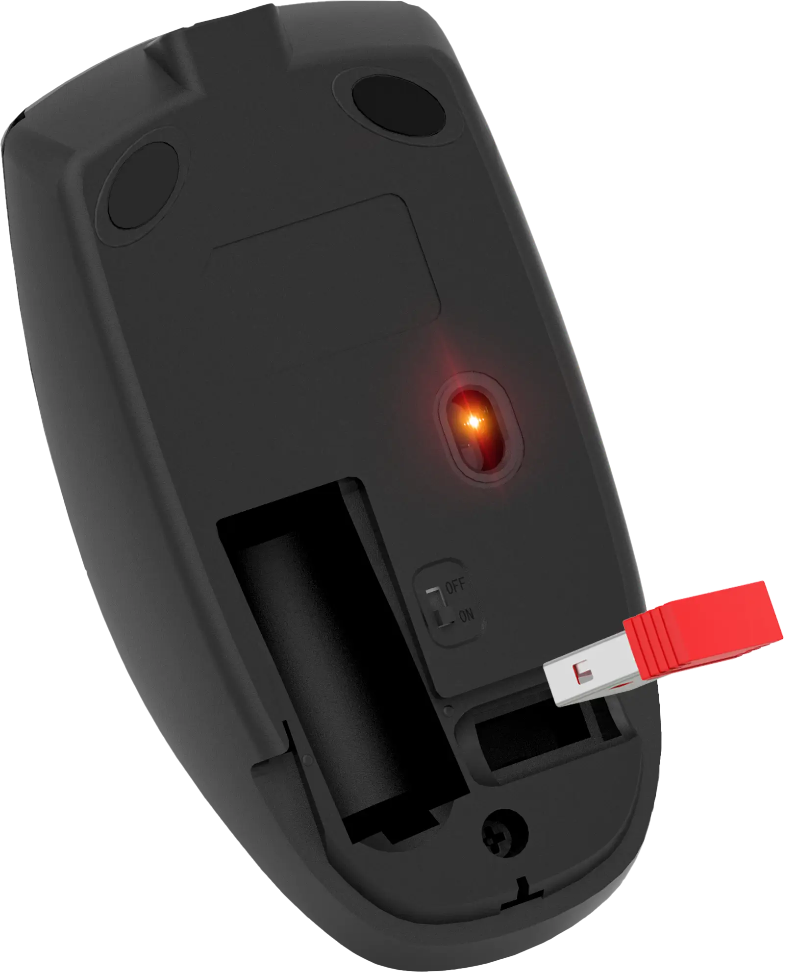 Офисная мышка с прорезиненным колесом прокрутки и тефлоновыми ножками для легкого скольжения по любой поверхности. Данная модель имеет симметричную форму, удобную для работы как правой, так и левой рукой. Корпус мыши оснащен отсеком для хранения приемника.